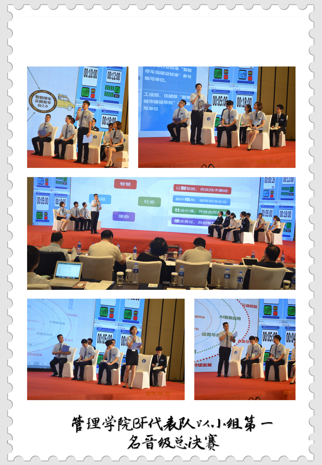 回顾总决赛初赛,根据案例在比赛前60小时才公布的规则,9月19日晚20:00老师同学们收到比赛案例,经过在管理公司的彻夜奋战,并有来自管理公司多位老师的指导和队伍成员以外的多名同学助力,第二天早5:00大家带着初步设计的案例分析方案出发前往比赛地点,经过了长达8小时的旅途奔波,于20日下午到达浙江义乌。到达比赛地点的第一时间,老师同学们顾不上休息,而是争分夺秒地进行案例分析与讨论,经过三天三夜不眠不休的连夜讨论与智慧和思维的碰撞之后,确定了具体的方案并精心准备了案例分析报告。22日上午,经过抽签分组,EMC易倍官网管理公司与中国科公司大学南京财经大学三队同台。全体成员通过对初赛案例中“喜泊客”智慧停车平台面临的诸多问题进行深入讨论,结合现代管理理论和企业实际,紧紧围绕企业技术创新与商业模式创新的方案与措施进行精准分析,最终以小组第一的身份晋级四强总决赛复赛。