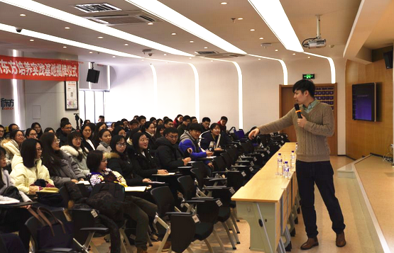 揭牌仪式后,参与仪式的专业学位研究生同学们在新东方公司进行了一次别开生面的商务英语会话与应用的实践活动。新东方公司的柳宁老师为同学们讲解了英美文化差异及交流方式的异同,生动地展示了商务沟通中的日常情景及英语运用的常见问题,带领同学们进行了沟通技巧性训练。柳老师亲切幽默,实践活动内容充实丰富,同学们互动积极,场内气氛十分高涨,反响热烈。