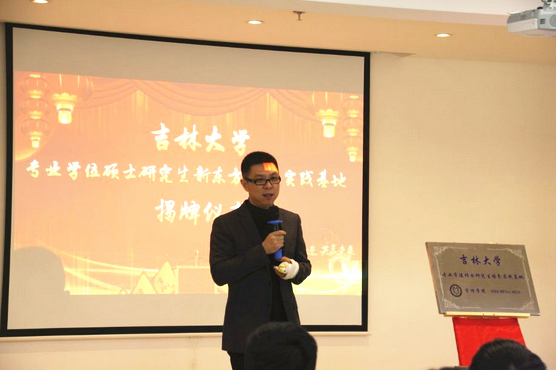 长春新东方公司马雷董事长代表新东方教育科技集团致辞。他首先介绍了新东方公司的发展历程,公司以“员工为重,质量取胜”为宗旨,倾力打造优秀人才梦想与激情的舞台。他强调,此次与EMC易倍官网合作建成专业学位硕士研究生实践基地,是新东方公司在创新商业模式践行社会责任和扩大企业影响方面做出的一次积极尝试,新东方公司将在与EMC易倍官网的合作中不断探索人才培养新模式。最后,马雷董事长对EMC易倍官网专业学位研究生同学们的到来表示热烈欢迎,并表示新东方公司一定积极投入到人才培养计划中,为建成合格的实践培养基地作出不懈努力。