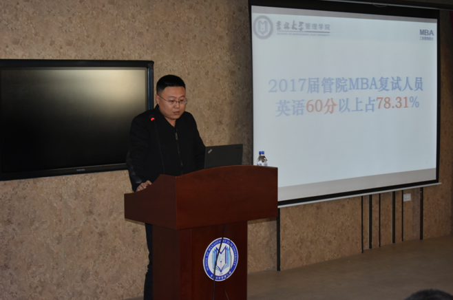 然后,管理公司16级MBA李凌宇同学17级MBA新生娄岩同学分别就管理类联考外语的备考经验向考生进行交流,期间李凌宇同学特别就“备考时间分配”“平均主义阅卷方式”进行了生动详细的介绍。