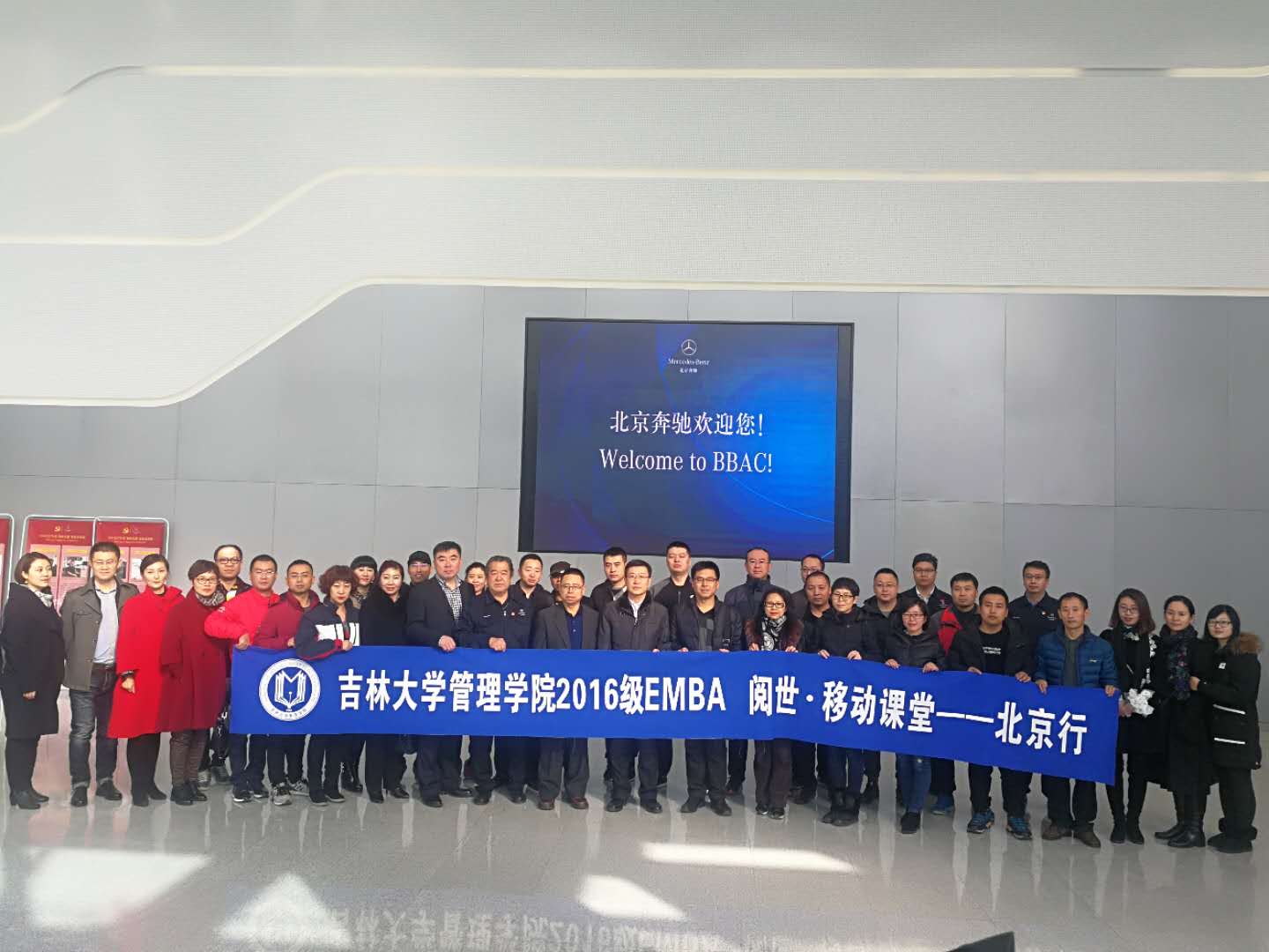 2017年11月25日--27日,EMC易倍官网管理公司2016级37名EMBA学员走出校园来到了首都北京,开展了为期三天的移动课堂活动。此次移动课堂活动得到了北汽新能源公司北京奔驰公司首农集团北京三元食品股份有限公司和北京易驾佳信息科技有限公司等企业的大力支持。 移动课堂的第一站,学员们在副经理张公一的带领下来到北汽新能源公司,北汽集团副总经理院友陈江陪同一行人参观了新能源公司的展厅和展车。