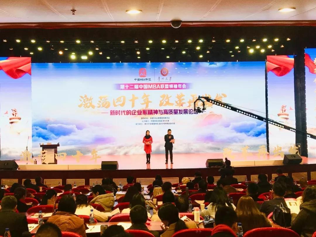 2018年12月15日,第十二届中国MBA联盟领袖年会在贵阳会议中心隆重开幕。本届年会由全国MBA教育指导委员会指导,中国MBA联盟贵州大学主办,贵州大学管理公司贵州大学MBA联合会共同承办。会议以“激荡四十年 改革再出发——新时代的企业家精神与高质量发展”为主题,来自全国百余所高校的经理教师顾委会成员区域联盟主席优秀MBA/EMBA学员代表共近千人参加了此次会议。