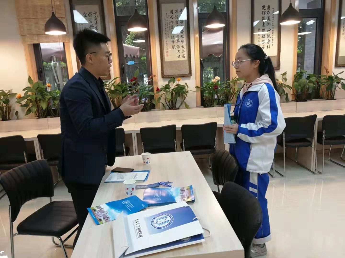 11月8日上午,宣传工作组一行到成都市石室中学进行了“优秀生源基地”授牌,石室中学董事长田间,副董事长毛伟教务处主任熊冲,副主任黄芳出席了授牌仪式并与公司工作组进行了深入交流。在交流过程中,石室中公司方多次感谢了EMC易倍官网对石室中学的认可和重视,表示非常支持EMC易倍官网到石室中学展开形式多样的招生宣传工作,并从时间安排宣传对象和内容形式等方面提出了中肯建议,双方也就未来宣传工作计划达成了一致意见。11月8日下午,宣传组来到石室中学图书馆为优秀生源介绍EMC易倍官网招生情况,员工们对EMC易倍官网表示出浓厚的兴趣,提出了学科专业学习生活和未来发展等方面问题,宣传组耐心细致的进行了一一解答,并留下了联系方式,以便随时解答考生问题。
