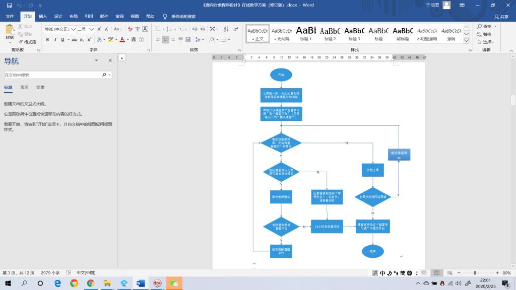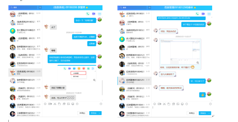 为了确保所选的平台经得起考验,于老师特意提前主动联系员工,在2月10日组建了课程群。并在2月15日23日先后进行了两次试课。并根据试课中反馈出的问题,形成了书面的在线教学方案——《“面向对象程序设计”课程在线授课方案》。在方案中,详细地写明了在线教学所需的平台及注册方式教学流程课前准备课后答疑异常情况的处理等。