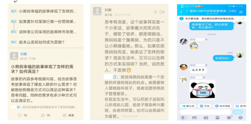 为了克服以上两个难点,刘娜老师对线上教学从两个方面进行了准备。一是重新规划课堂内容的体系设计,在理论讲授前,大大加重了现实案例铺垫和逻辑性引导,让员工能顺利的从松散生活逐步进入深度思考;第二,提前公开课程精彩环节,发布趣味性讨论,并以00后所熟悉的方式开展群内互动,完成课前引流。