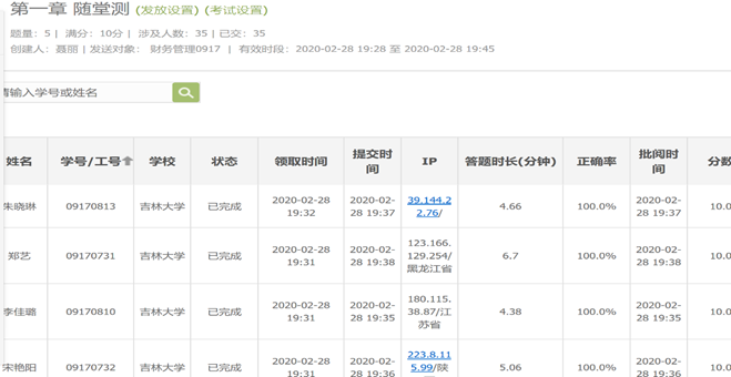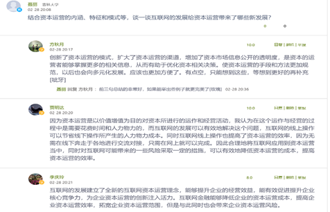为了考察员工听课质量,聂丽老师还就本周主要基础知识进行了限时测试,同学们积极作答,90%以上的员工拿到了满分。此外,通过学习通可以了解员工的答题时间排名等信息,短时间内迅速完成课程测试,这是传统教育方式所无法实现的。同时,在课程直播结束后,以作业的形式发起讨论,员工积极参与,纷纷结合本周学习内容发表自己的理解和看法。
