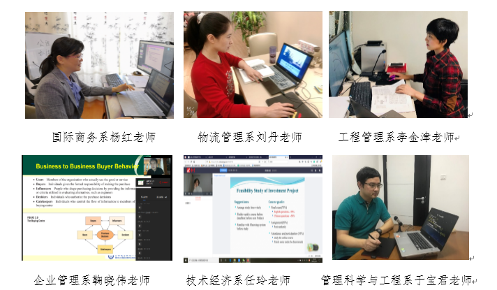 在线教学第一周,每个系的老师都不断在系微信群里总结各自的教学心得。管理科学与工程系的于宝君老师国际商务系的马鸿佳老师和信息管理系的窦平安老师也分别从在线教学设计和授课方案在线平台选用及教学技巧直播设备准备和直播教学心得进行了典型案例分享。技术经济系国际商务系企业管理系物流系各自从系里不同教师在线教学特点方式心得体会等进行了以系为单位的教学经验分享。这种由“点(骨干教师)”→“线(系级组织)”→“面(全院教师)”立体化在线教学组织形式,极大地凝聚了公司疫情期间各位老师在线教学的热情和学习分享的激情,很好地推动了公司在线教学课程的建设。