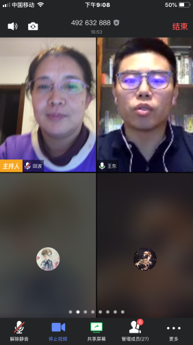 3月23日晚由担任2018级本科生指导教师田波教授主持,青年骨干王东和李苗老师共同通过网络会议形式进行了师生交流会。在交流会前已将4位老师的简历发放给员工,交流会中向员工们介绍了管理公司本科生导师制初衷,4位老师的基本情况研究方向和老师的对此项工作的想法,选择专业导师的流程等。同学们也提出了自己关心的相关问题,3位老师根据现场同学们在选择过程中的问题进一步做了解释说明。