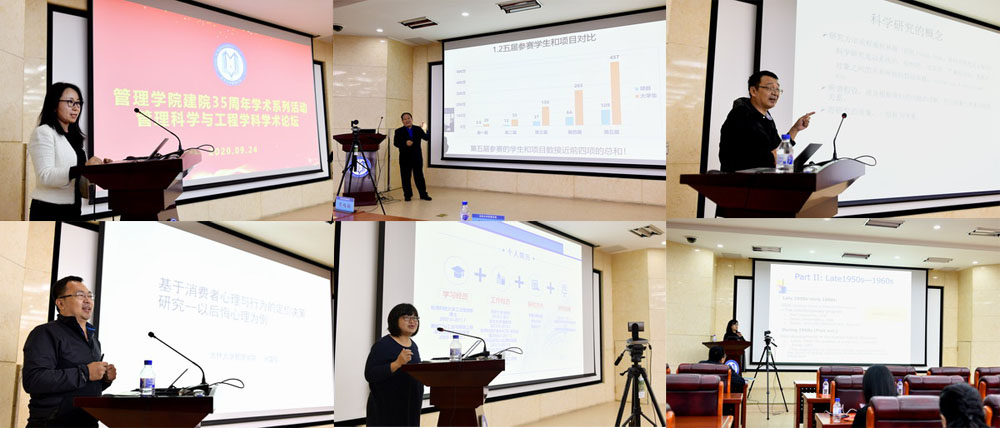 六位报告嘉宾结合个人专业领域分享了自己的科研成果以及科研历程,报告内容获得与会师生共鸣。本次论坛既是管理科学与工程学科近年来科研学术成果的一次分享,也是与会师生院友的一次学术碰撞,对本学科未来发展与建设提供了有力的支撑。