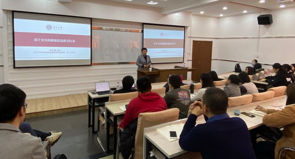 李月琳教授结合论文“基于交互的健康信息搜寻行为研究”与师生们分享了其在信息交互方面最新的研究成果。结合“互联网+健康医疗”的政策背景以及现有研究中存在的缺陷,提出三个研究问题:“用户与医生交互会话过程中存在哪些模式?”“用户与医生交互的不同模式有哪些特征?”“影响用户与医生交互会话效率的关键因素是什么?”,围绕以上问题,李教授详细阐述了其运用质性研究方法开展研究的全过程。李教授主张 “研究主题要有趣讨论部分要精彩”。报告最精彩的部分是李教授结合研究结果对研究结论所做的深入剖析与阐释。