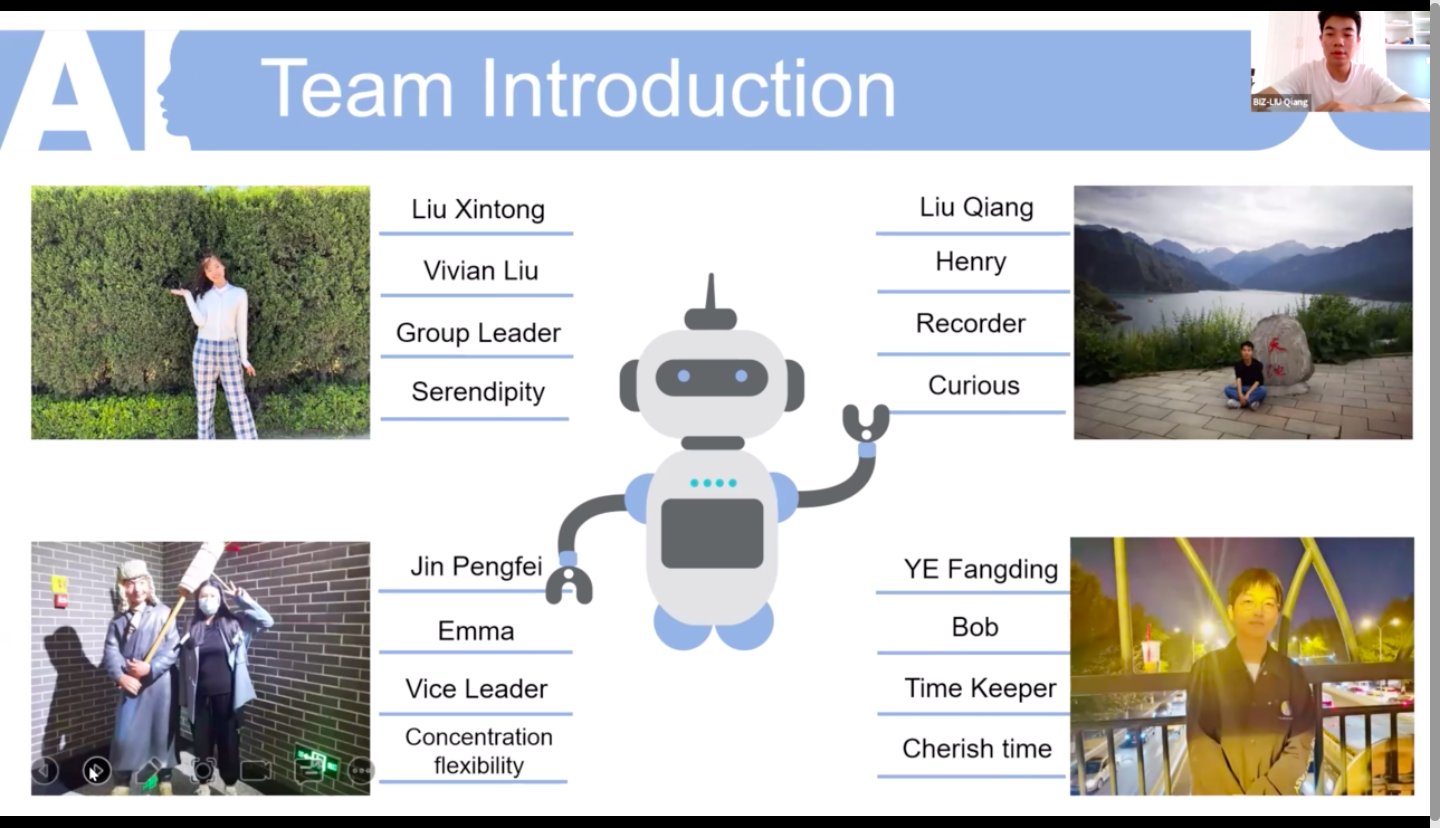 破冰仪式由教授介绍和小组介绍两部分组成。会议开始,先由Jochen教授进行自我介绍并说明课程的基本概要,明确了本次课程的背景意义及目标,使同学们增进了对项目课程内容的了解程度,为以后的课程学习和项目研究做好充分的准备和铺垫。教授讲话结束后,六组成员分别按照顺序进行了小组自我介绍与小组课题介绍。大家的小组介绍丰富多元,从个人情况介绍到兴趣爱好介绍,从小组名称含义解读到对课题的初步理解,各组均按时顺利完成了破冰任务和介绍任务,使彼此之间的认识和了解更加充分,结识到了更多的学习伙伴,也初步找到了自己的研究方向。最后,对于同学们精彩的表现,Jochen教授给予了充分的肯定,并期待同学们可以在后续的课程学习中收获满满!