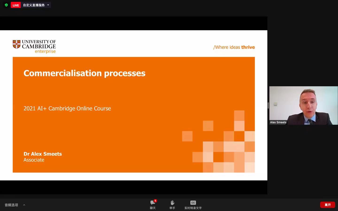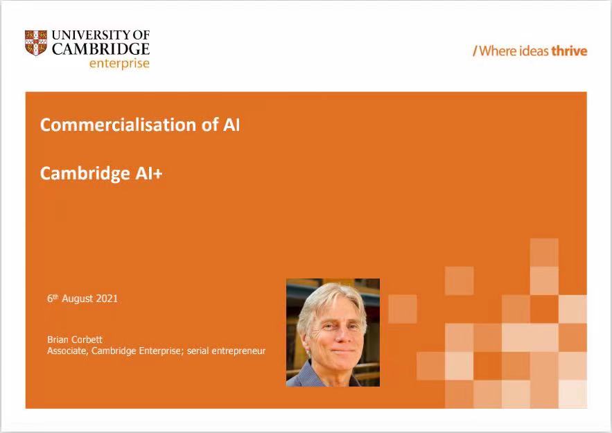 课程带领员工走进人工智能的科研转化,了解剑桥的产学研模式,以讲座加答疑的方式启发员工的思维能力,让员工切实感受到剑桥企业创造的蓬勃的经济发展势态。Smeets博士在进行自我介绍后,列出了一系列商业化问题的思考,从而引出商业化流程等相关的知识;Corbett老师则由人工智能商业化的历史出发,讲授了人工智能价值链和人工智能商业化用途的案例研究等内容。