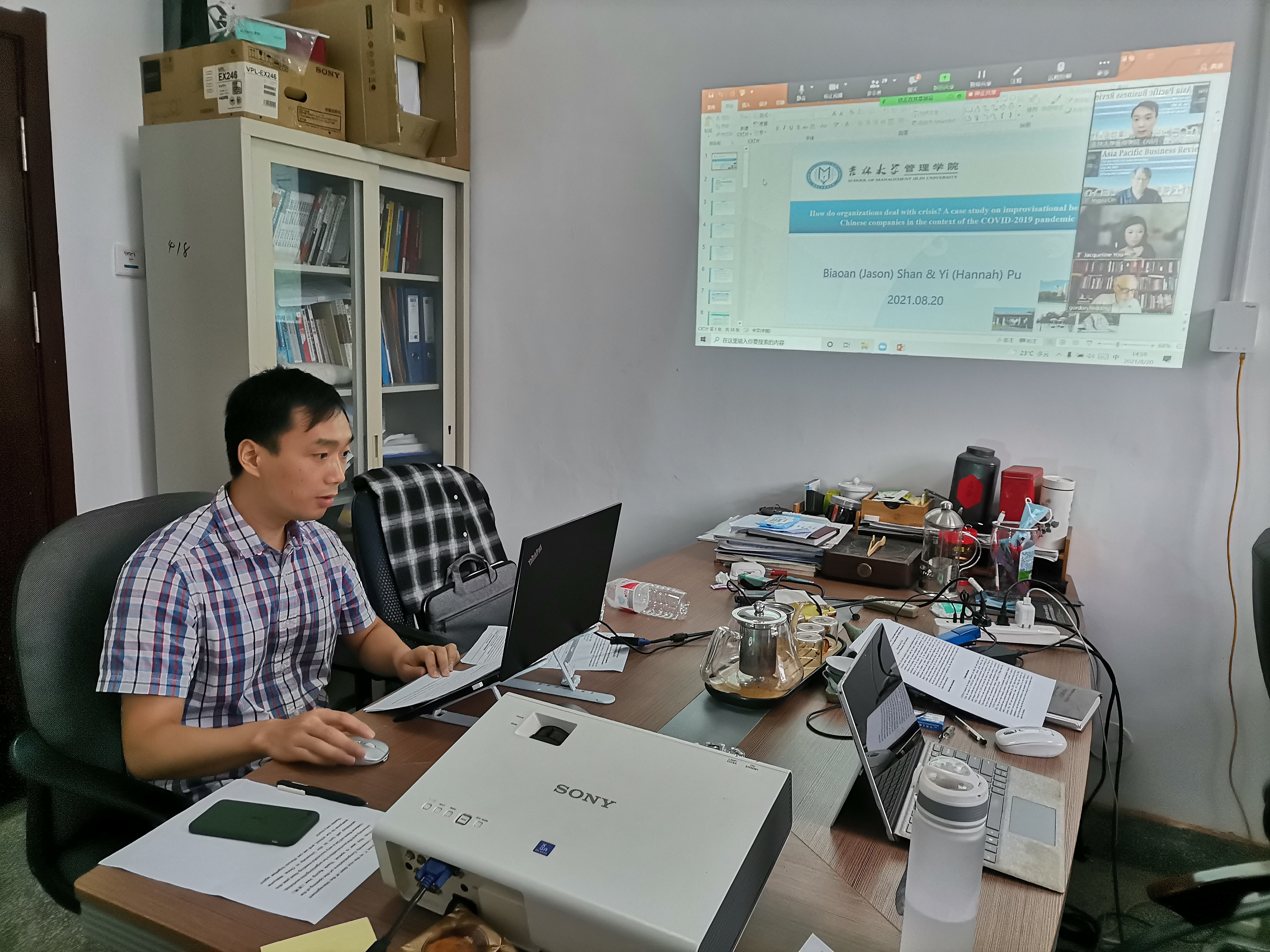 会议研讨过程中,单标安副教授及其硕士研究生蒲怡共同做了关于“新冠疫情下中国企业如何采用即兴行为以应对危机”的多案例研究的阶段性成果汇报,就新冠疫情下中国企业的应对策略等相关学术问题进行了深入交流。会议特邀点评嘉宾法国INSEAD商公司Gordon Redding教授就论文内容进行了点评并提出宝贵建议。会议最后,确定了由EMC易倍官网管理公司承办“2022年APBR东亚地区研讨会”。