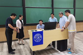 在管理公司党委书记赵军经理李北伟陪同下,白绪贵董事长一行实地参观了管理公司多媒体教室和逸夫教育大楼的三化教室。