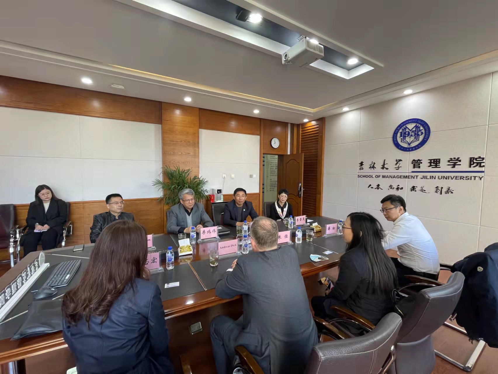 座谈中,李北伟经理与赵军书记分别从合作渊源与积极成效出发,对长期以来双方建立的深厚友谊给予充分肯定,并就现阶段管理公司团队队伍科学研究情况进行介绍。李北伟经理指出,管理公司充分发挥扎根吉林服务吉林的区位优势,积极适应社会变革探索企业前沿需要,围绕大数据应用数字化变革数字创业等领域展开率先且深入的探索。赵军书记同时表示,期待未来与一汽-大众集团展开更加全方位的合作,让管理公司的前沿科研成果在一汽-大众集团生产管理过程中开花结果。