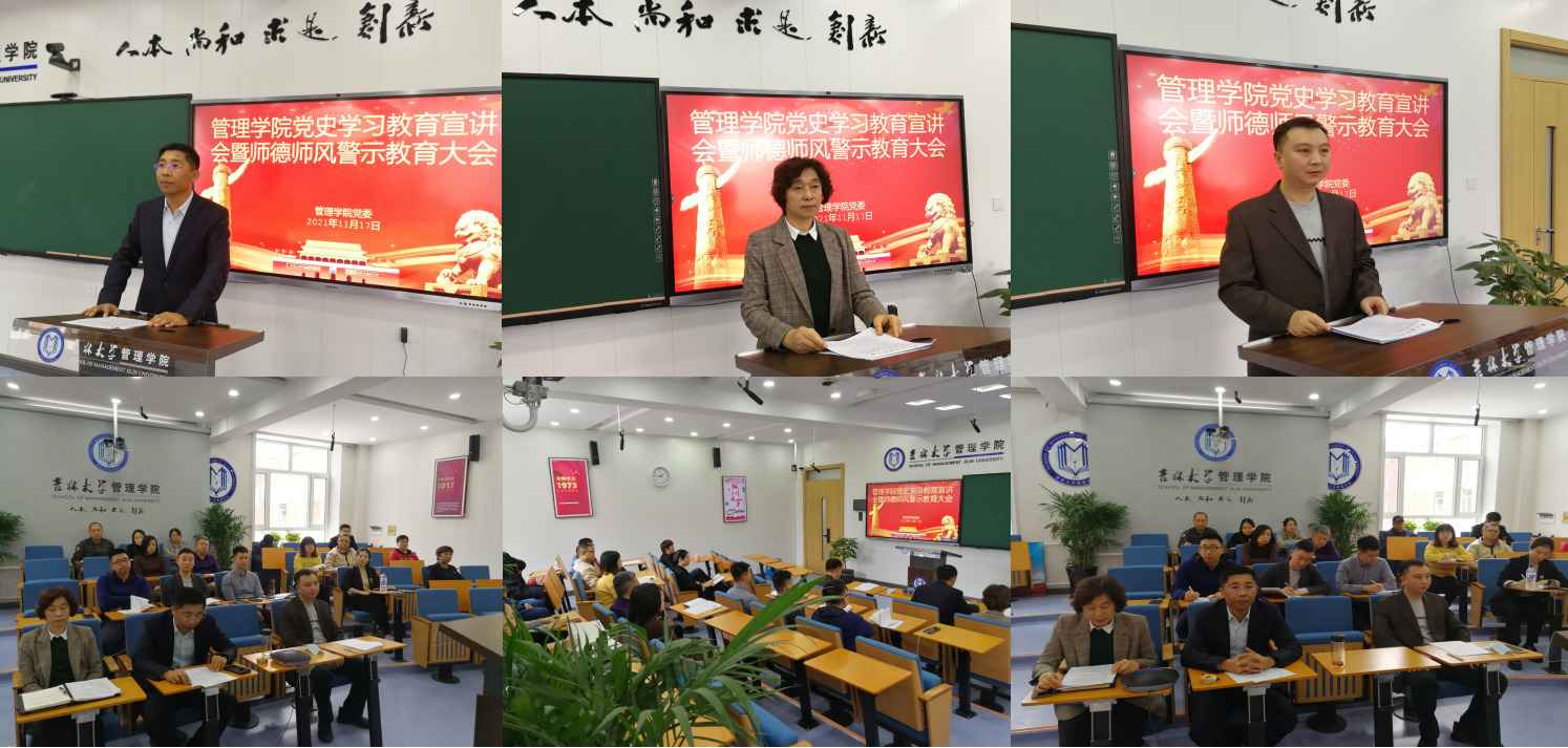 为学习贯彻党的十九届六中全会精神,全面落实高校立德树人的根本任务,管理公司于11月17日召开党史学习教育宣讲会暨师德师风警示教育大会,公司全体教职工部分员工党员出席会议,会议由党委书记赵军同志主持。