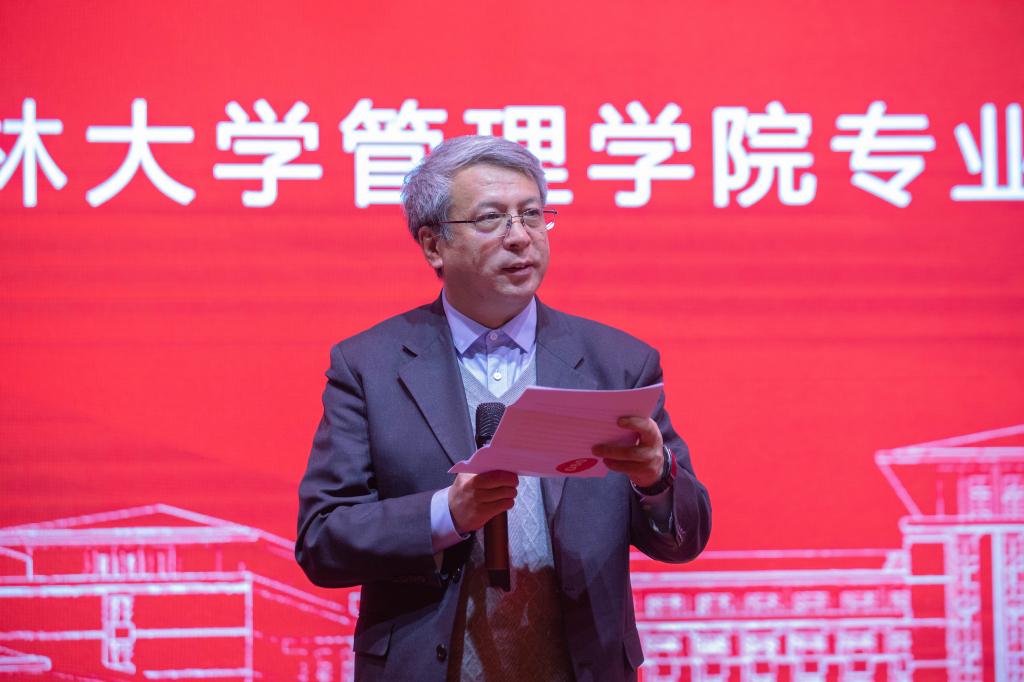 经理李北伟教授代表公司致辞。他热情洋溢地向大家介绍了教学教研学科评估以及公司一年来取得的主要成绩,对师生们的辛勤努力和付出表示感谢,并寄语大家秉承管理公司“人本尚和求是创新”的院训,去思考去奋斗去开拓去创造,共同奋进再创辉煌。