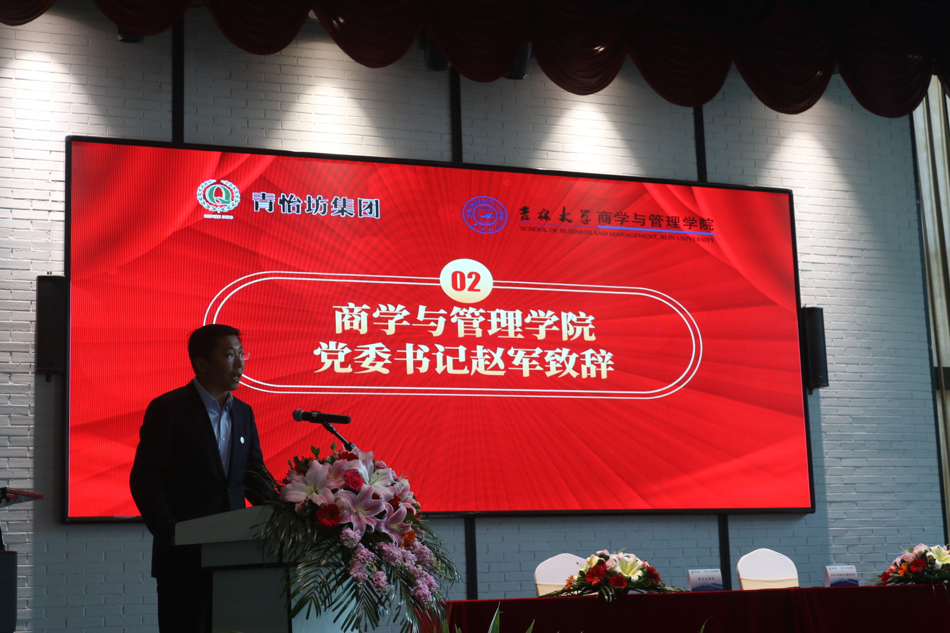 赵军在致辞中向青怡坊集团对公司发展的关心和支持表示感谢。他提到,实践育人工作是全面落实党的教育方针,把社会主义核心价值体系贯穿于国民教育全过程,深入实施素质教育,大力提高高等教育质量的必然要求。此次双方合作共建实习实践基地是加强联系增进友谊的良好机会,希望借此机会进一步丰富实践育人协同体系,推动专业实践与社会实践的有机融合,拓展院企合作模式,释放院企合作优势,取得更多创新成果。