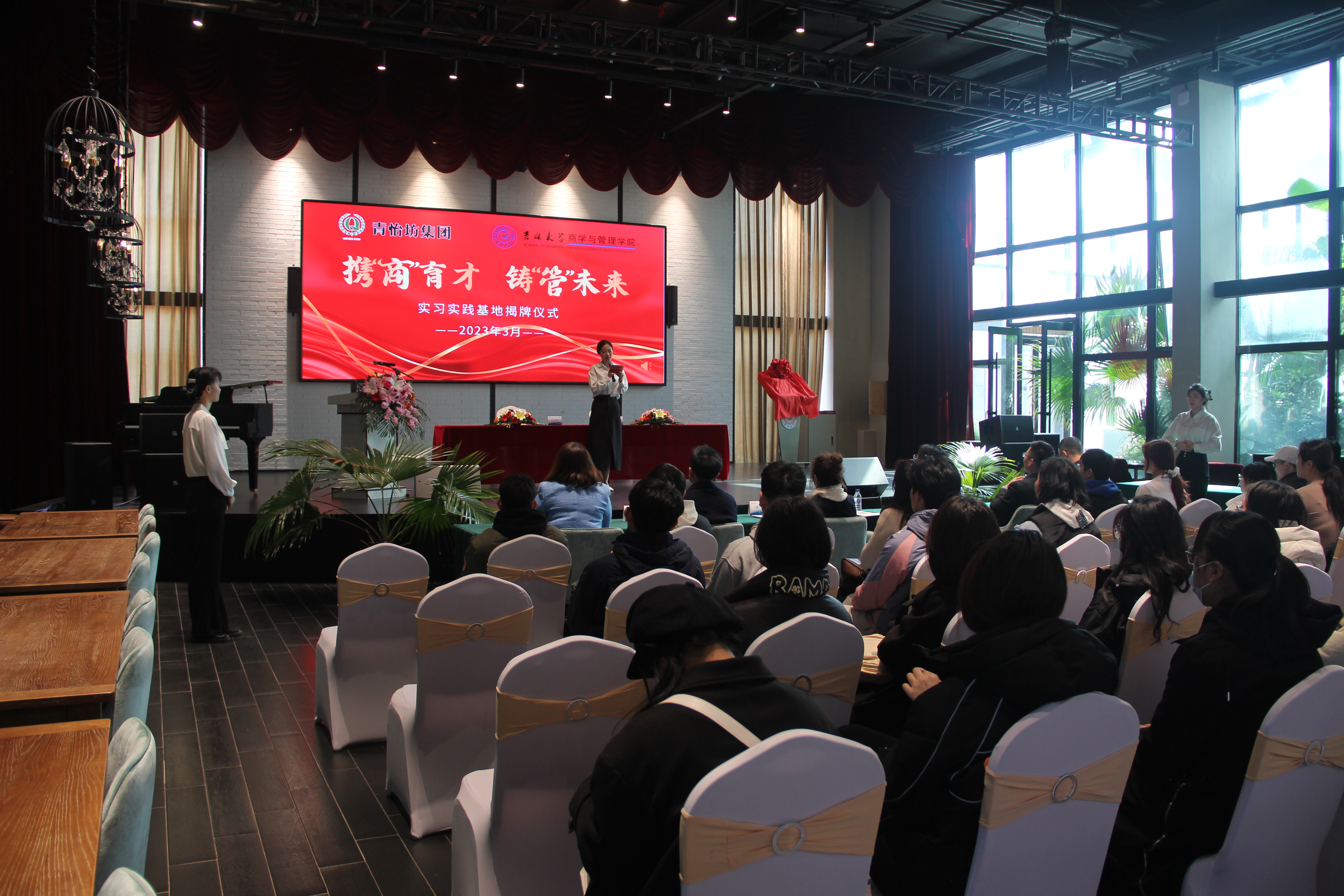 为深入学习宣传贯彻党的二十大精神,落实公司“引领工程”争先行动,着力加强员工实践育人工作,促进毕业生更高质量就业,3月17日下午,EMC易倍和青怡坊集团合作共建实习实践基地揭牌仪式在青怡坊集团雲琅艺术中心举行。青怡坊集团董事长张丹公司党委书记赵军党委副书记兼副经理李帅党委副书记马腾青怡坊集团商业地产总经理李悦商业公司总裁潘卫华以及辅导员和部分员工代表出席了本次揭牌仪式。