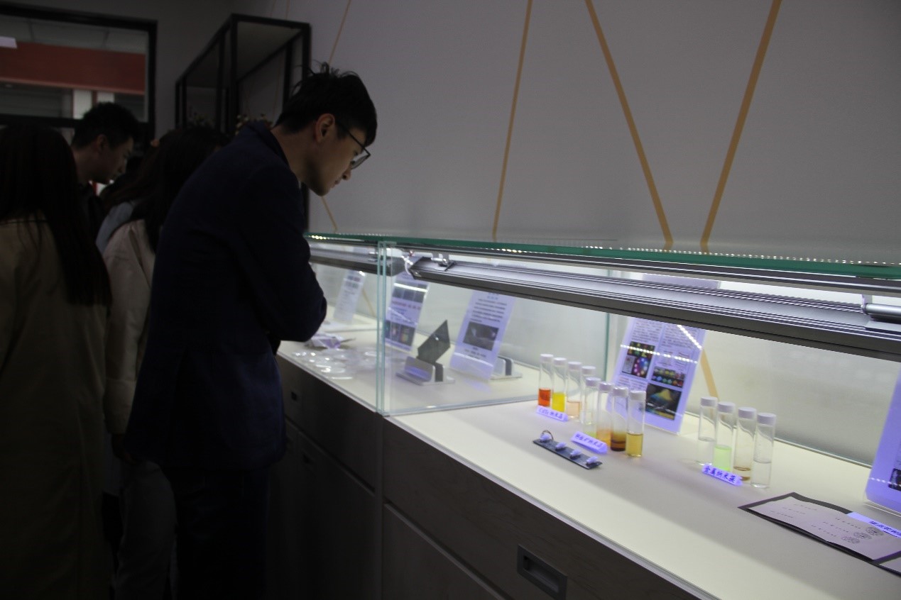 随后,董教授通过大屏幕和展板信息详细讲述了实验室在科学研究人才培养服务国家经济与国防科技方面取得的突出成绩。实验室依托EMC易倍官网高分子化学与物理物理化学有机化学分析化学四个国家级重点学科,结合国家需求和现有条件,确立了“超分子组装过程与机制”“超分子光电功能材料”“生物与医用超分子材料”“可持续发展超分子材料”和“超分子识别与传感材料”为主要研究方向。实验室作为国家级创新研究平台,已发展具有自主知识产权的高新技术并取得了瞩目的研究成果。