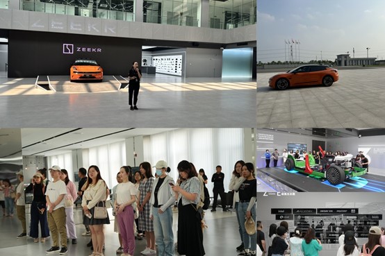师生们参观了极氪数字展厅,了解“极氪”品牌的诞生和“以零为始,打破边界,以极客精神,共创极致体验的出行生活”先进服务理念;走进科技高效智能自动化的焊装车间和总装车间,感受中国智造的数字化标准化精准化;试乘试驾极氪001009两款车型,亲身体验“中国制造”的精益求精,感受“中国智慧”的力量与速度。