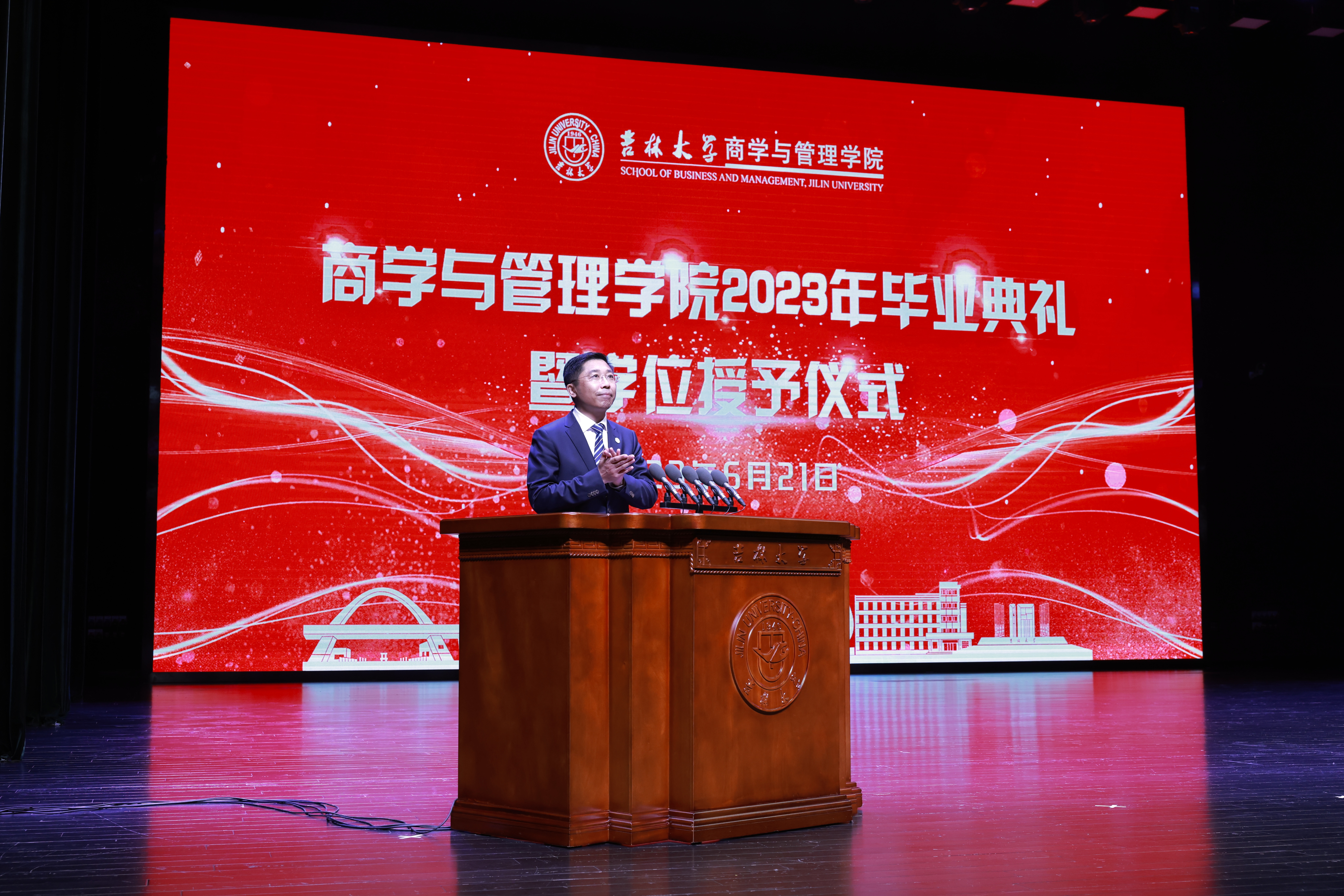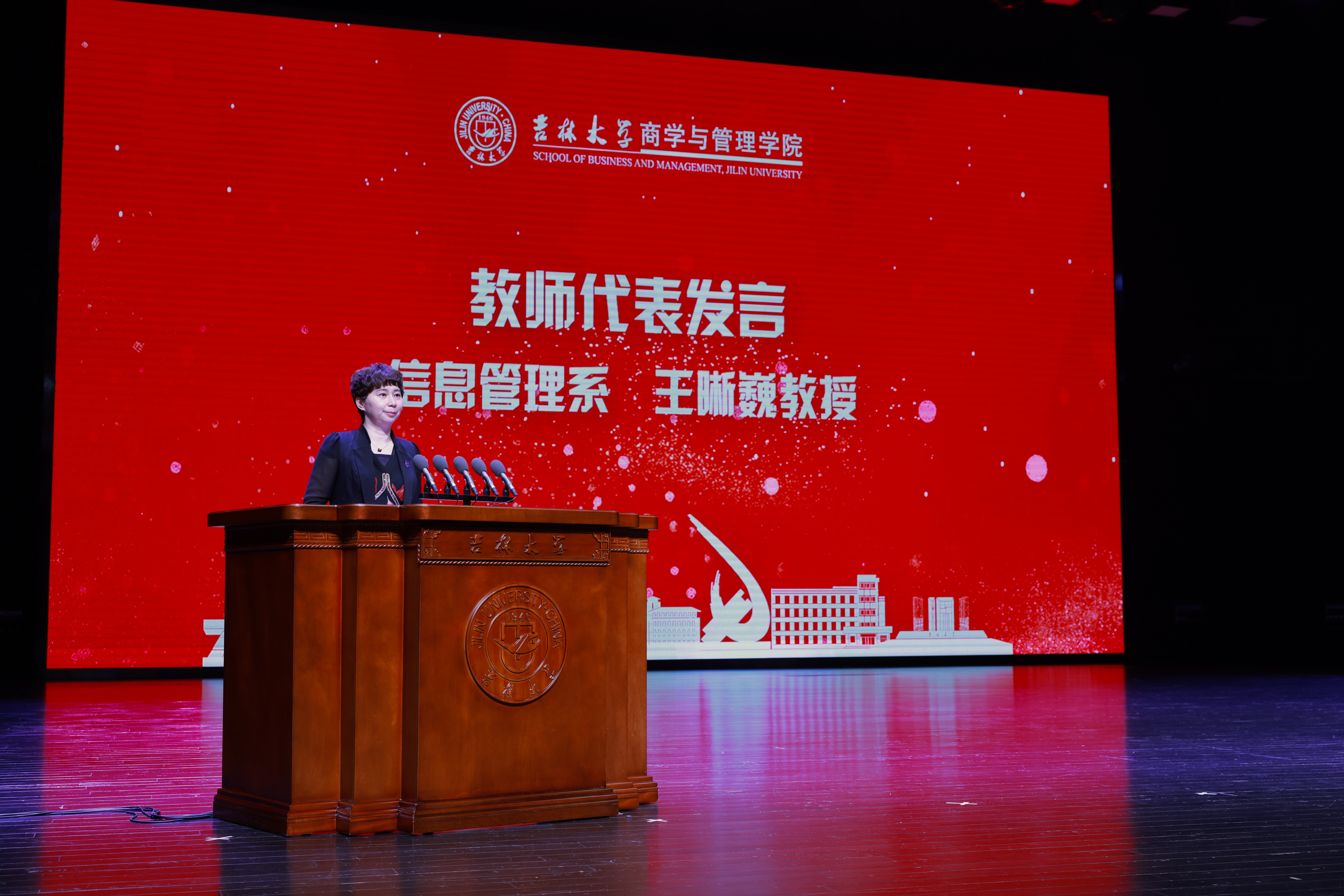 典礼上,EMC易倍官网社会科学研究院副经理青年长江学者EMC易倍信息管理系王晰巍教授,作为教师代表进行了发言。王晰巍教授在发言中对毕业生们送上祝福:第一,希望同学们心有梦想,能勇立时代潮头。第二,希望同学们追求优秀,把勤奋作为习惯。第三,希望同学们终身学习,提升人生格局。最后,王晰巍教授祝愿吉大商管的学子们能够不断开创个人职业生涯发展的灿烂前程,不断为吉大商管公司争光,不断谱写国家发展和时代腾飞的辉煌篇章!