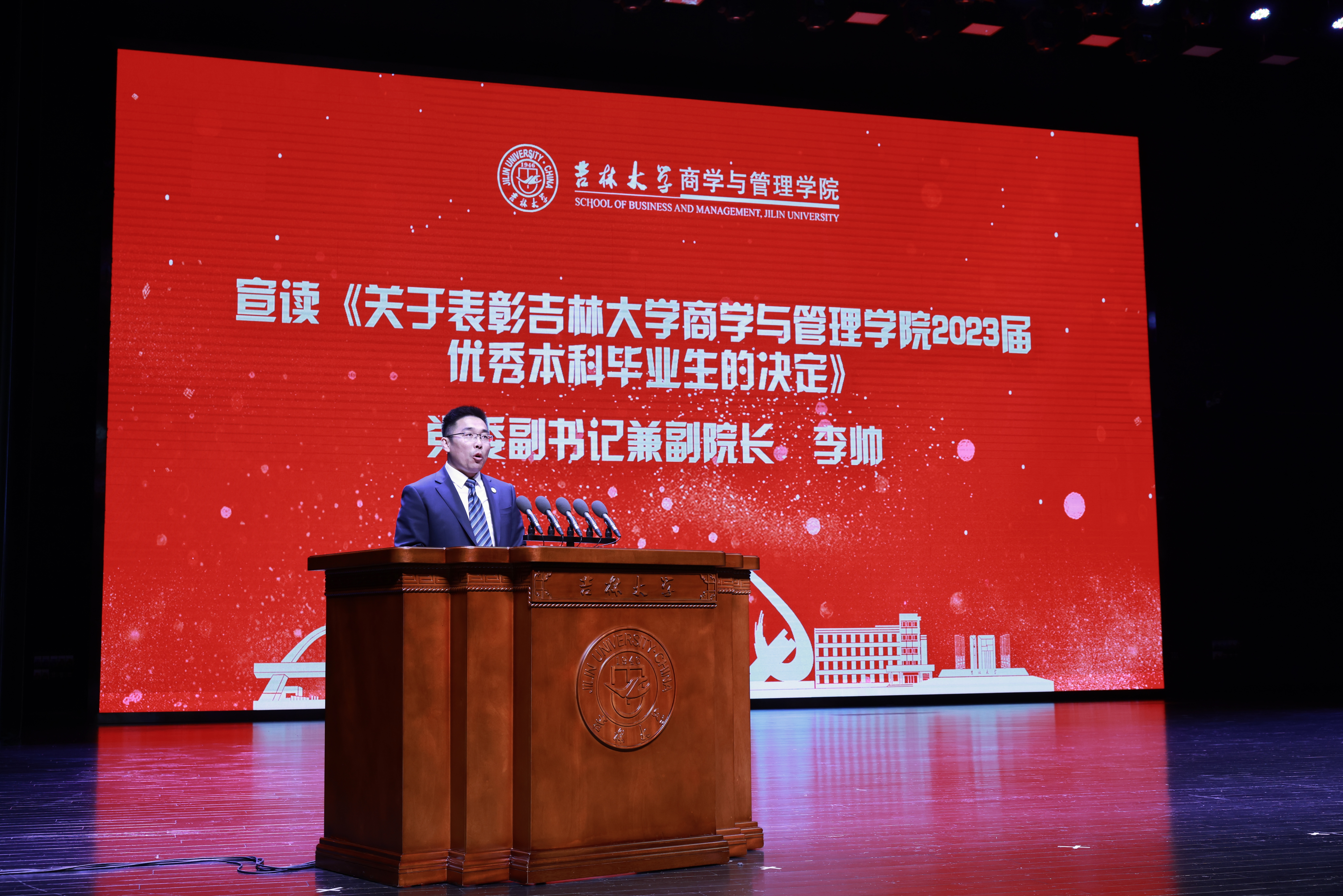 典礼上,公司党委副书记兼副经理李帅老师公司党委副书记马腾老师分别宣读了《关于表彰EMC易倍2023届优秀本科毕业生的决定》和《关于表彰EMC易倍2023届优秀毕业研究生的决定》。