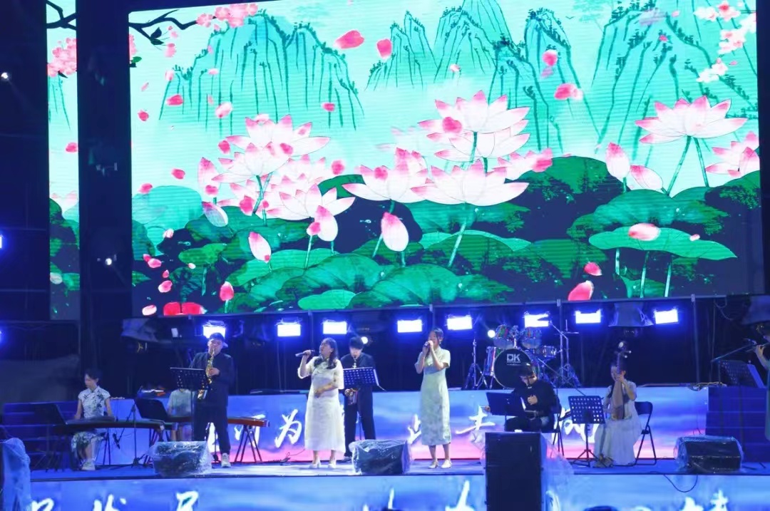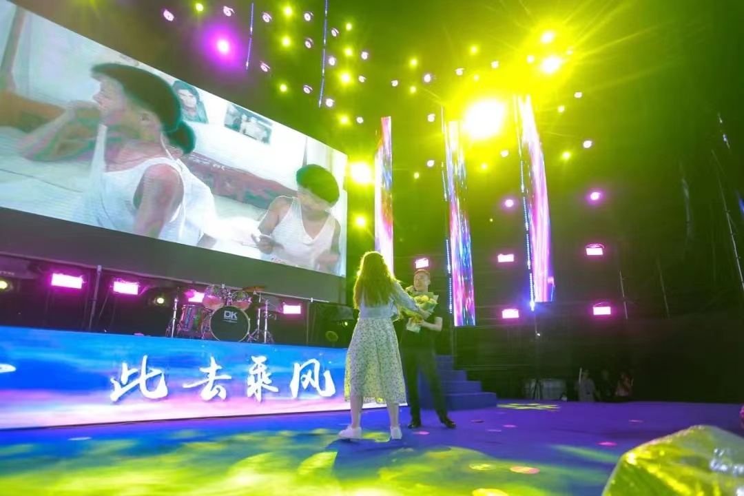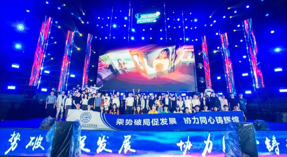 踏歌远航扬新帆。节目一上场的同学们以成长时间为顺序,依次演唱了《猪猪侠》《青春修炼手册》《听妈妈的话》《最初的梦想》《第一天》《恋爱ing》等歌曲,歌曲描摹的场景从稚嫩走向成熟,那是童年,是一路以来埋藏于心的天真与欢乐,更是现在的青春回忆,熟悉的旋律唤起了同学们的共鸣,久违的感动涌上心头,令人久久难以忘怀。随后由nu乐队带来歌曲《夜空中最亮的星》《一万次悲伤》《想去海边》,舞蹈Not Shy紧跟其后,精彩的表演将现场的气氛再次推向顶峰,有如潮水,层层跌宕。裴月莹老师与几位同学一起献上了师生朗诵《扬起风帆,梦想远航》,公司领导班子各系代表教师以及各年级同学代表一起合唱了《凤凰花开的路口》《相亲相爱》,温柔而又充满力量的商管之音唱响夜空,久久不息。
