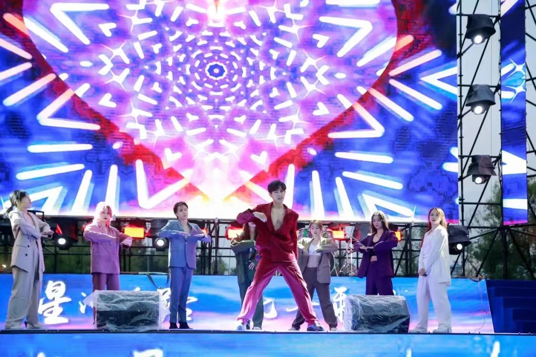 晚会以乐队演奏《你要跳舞吗》及舞蹈Love Shot为序,让热烈的歌声与舞蹈携同晚风憾然登临舞台。隐没在热浪里的少年们开始热情呼喊,无际的夜色奔涌起彩色的荧光海,在主持人的声声引导下,这场夏日盛宴正式开始。