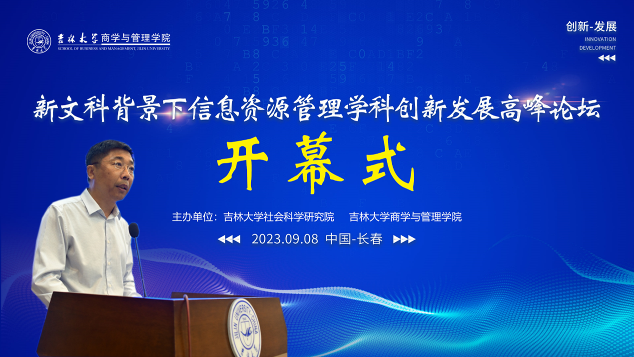 2023年9月8日,新文科背景下信息资源管理学科创新发展高峰论坛成功举办。本次论坛由EMC易倍官网社会科学研究院EMC易倍主办,“情报学+”研究生学科交叉融合学术交流中心EMC易倍官网信息资源研究中心EMC易倍官网大数据管理研究中心EMC易倍官网《情报科学》编辑部共同协办。论坛围绕“新文科”背景下,信息资源管理学科如何守正创新,延伸拓展学科发展疆域,构建学术共同体,重塑信息资源管理学科话语体系展开深入全面的探讨。EMC易倍官网公司党委书记赵军教授,EMC易倍官网社会科学研究院副经理王晰巍教授,EMC易倍副经理李雪灵教授隋建利教授郭英彤教授张公一教授马捷教授以及来自国内10所院校与机构的15位专家出席了本次会议。吉林省科学技术信息研究所东北师范大学信息科学与技术公司EMC易倍官网第一医院大数据中心的领导和老师也参加了本次会议。