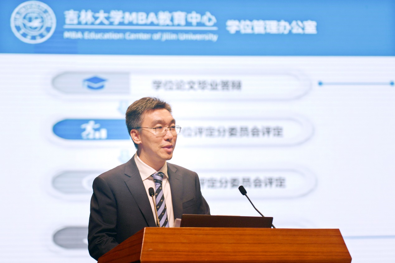 中心教学管理办公室主任林晶学位管理办公室主任李怀日员工事务工作办公室主任王世强,分别介绍了MBA的培养目标培养特色学位相关环节与答辩流程各项特色员工活动与员工组织等相关内容,为同学们未来学习生活规划引航。