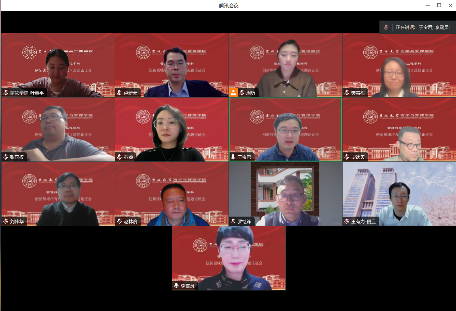 随后,张国权副教授苏婉副教授毕达天教授周昕副教授分别就“低碳发展视角下的易逝品心理定价与供应链协调策略研究”“数据要素市场参与的流通模式及激励机制研究”“可信AI导向下人机知识融合促进智能增强策略研究”“我国制造企业数智化能力及提升策略研究”等选题,向各位专家组成员进行了介绍。诸位老师分别对选题的背景意义必要性创新性等逐一进行汇报。