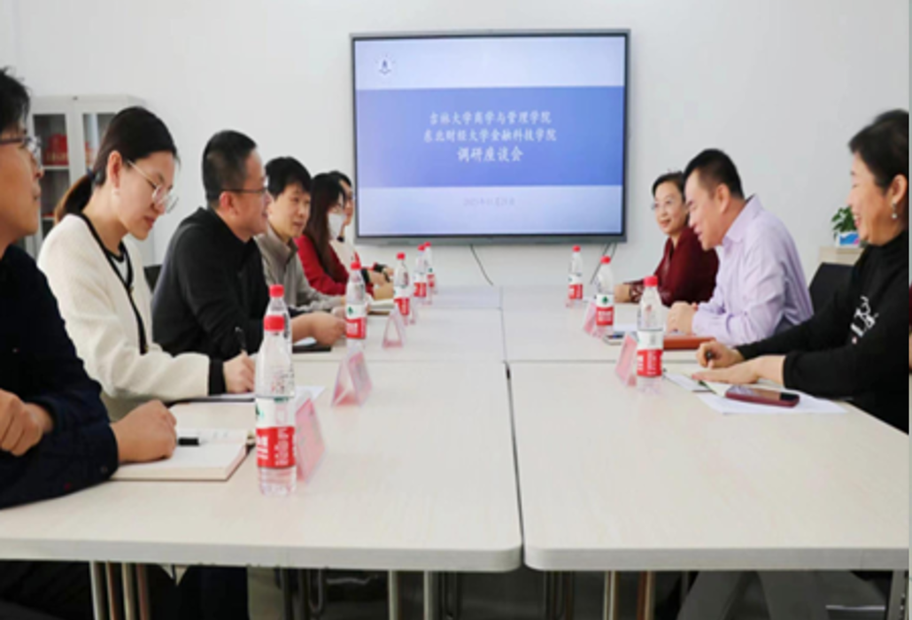第一调研组由应用金融系丁志国教授董竹教授孙秋枫副教授三人组成,于2023年11月20日赴东北财经大学进行学科调研,与东北财经大学金融科技公司副经理李凤羽教授副经理王谨乐副教授及教师代表进行了座谈。李凤羽副经理介绍了东北财经大学金融科技公司创建的历史团队情况人才培养招生以及毕业生就业等情况。丁志国教授说明了此次调研的目的和希望交流的多方面问题。董竹教授介绍了EMC易倍的基本情况以及应用金融系团队队伍科学研究和专业建设情况。随后,双方就专业定位人才培养跨学科团队培育海外高水平人才引进学术科研学界业界跨界融合等重点问题进行了深入的交流。
