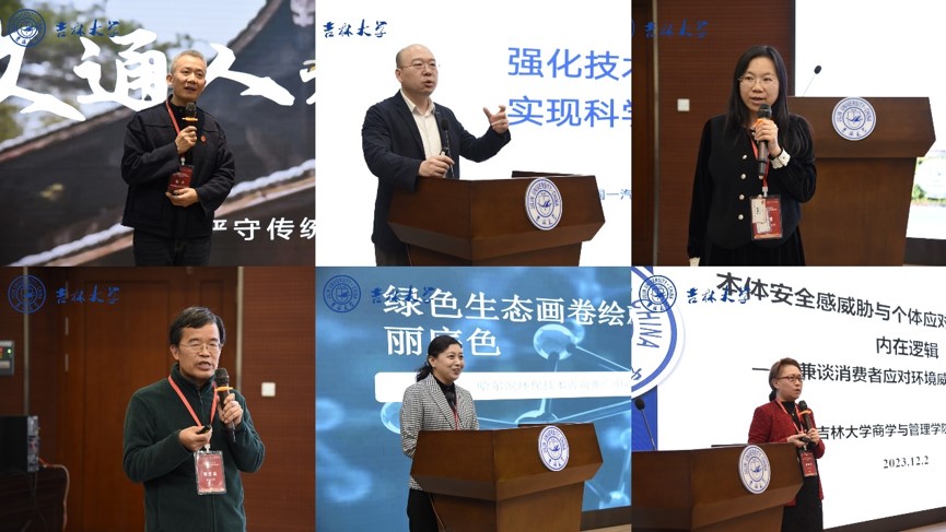 福建省隆合茶业有限公司董事长非物质文化遗产传承人杨丰先生分享了“政通人和九百年”,介绍了7000万年前世界茶树的起源和发展。中国一汽科技创新管理部(研发总院)张强总监的研讨主题是“强化技术与产业双轮驱动实现科学与工程有效贯通”,认为传统行业正面临巨变,汽车产业面临发展与安全产业创新等问题;哈尔滨商业大学管理公司吴绒教授介绍了数字农业全产业链绿色生态体系构建及其运行机制研究;湖南大学工商管理公司贺爱忠教授提出了建设生态环境全国统一大市场的思考,并结合中央精神及市场现状,提出了培大培优培强的生态环境市场主体全面推进生态环境市场课题健康有效流通的思考;哈尔滨环保技术咨询推广中心李晔主任以“绿色生态画卷绘就靓丽底色”为题,分享了自己切身实践过的绿色生态项目;EMC易倍金晓彤教授阐述了本体安全感威胁与个体应对性消费行为的内在逻辑,从社会层面和个体层面介绍了威胁的来源和影响,并提出了应对方式及未来展望。