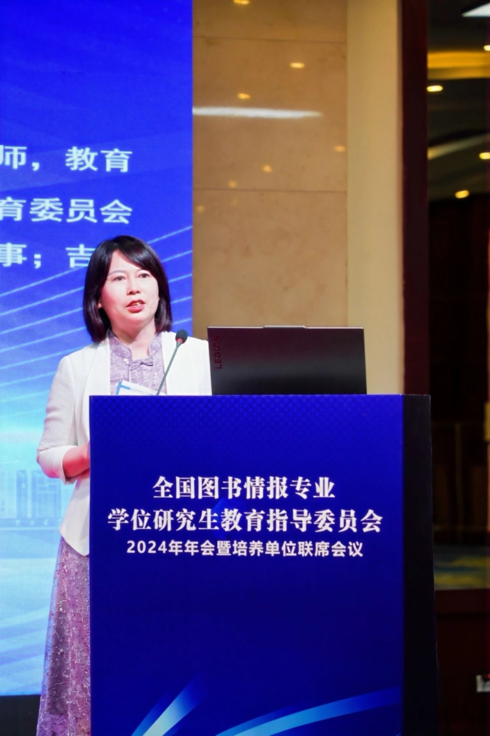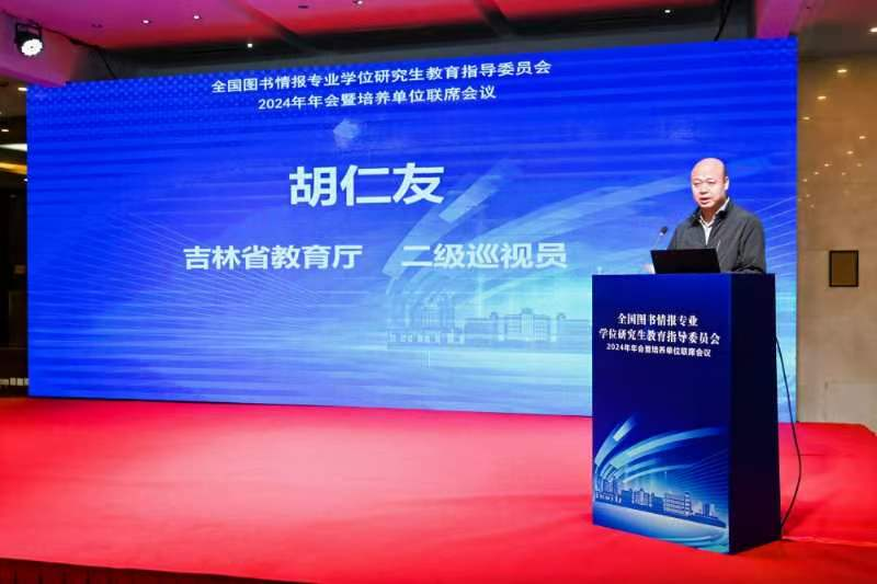 吉林省教育厅二级巡视员胡仁友在致辞中指出吉林省在党的全面领导下积极贯彻“十四五”教育发展规划,致力于提升人才自主培养质量,构建高质量教育体系,为我省的全面振兴和社会主义现代化建设作出教育新贡献。他介绍了省内专业学位发展和学位点建设的总体布局,并肯定了我省在图书情报专业硕士培养和团队建设等方面取得的成绩。他期望借助本次大会,省内四所高校学位授权点能够全面展示各自的办学成果和特色,通过加强交流合作,取长补短,共同打造图书情报硕士人才培养的吉林品牌和吉林模式,为区域经济社会发展持续赋能。
