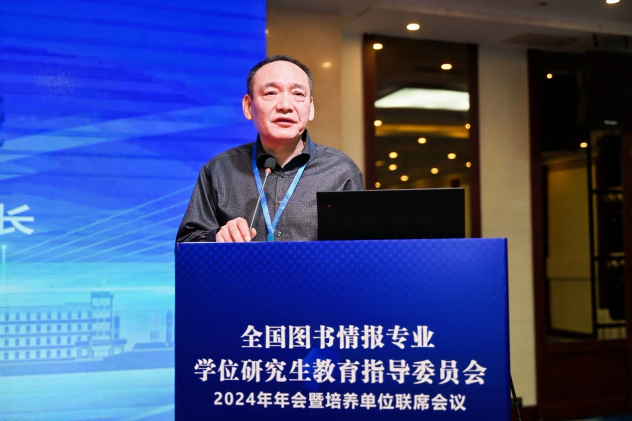 教指委副主任委员武汉大学资深教授陈传夫代表教指委做了年度工作报告。他回顾总结了图书情报专业学位研究生教育2023年度工作情况,对专业学位研究生教育的现状与挑战进行了深入分析,并指出在未来的工作中要“学深悟透系列重要指示和相关文件精神,高度重视过程管理与质量管理,探索产教融合育人机制,加强实践创新能力培养,系统性设立一批研究课题,谋求发展思路,搭建组织服务平台推进工作具体落实。”他强调,图书情报专业学位教育正处在“服务需求提高质量”的重要发展阶段,我们要以习近平新时代中国特色社会主义思想为指导,全面贯彻党的教育方针,坚定走内涵式发展道路,在人才培养成果转化资政辅政文化传承等方面承担应有职责,发挥更大作用。