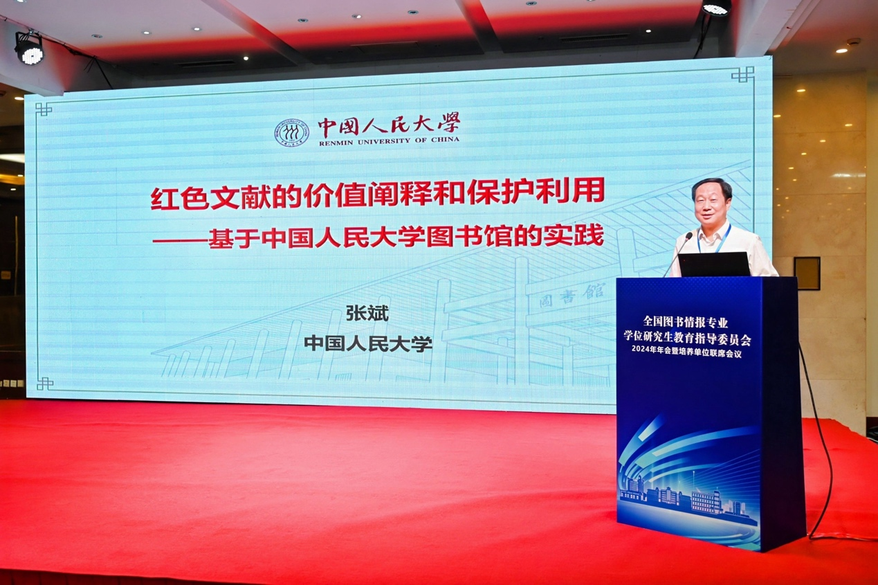 中国人民大学图书馆馆长张斌教授作题为“红色文献的价值阐释和保护利用——基于中国人民大学图书馆的实践”的报告,对我国红色文献的保护利用背景内涵价值,以及中国人民大学图书馆红色文献的价值与保护利用进行了剖析与阐释。