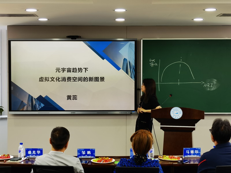 黄蕊老师在《元宇宙趋势下虚拟文化消费空间的新图景》的主题报告中,介绍了以知识-科技成果为内在动因的虚拟文化空间建构,指出虚实融合空间建构需要通过技术服务日常生活满足精神文化需要,强调消费者的主体性,符合公众意愿特征。