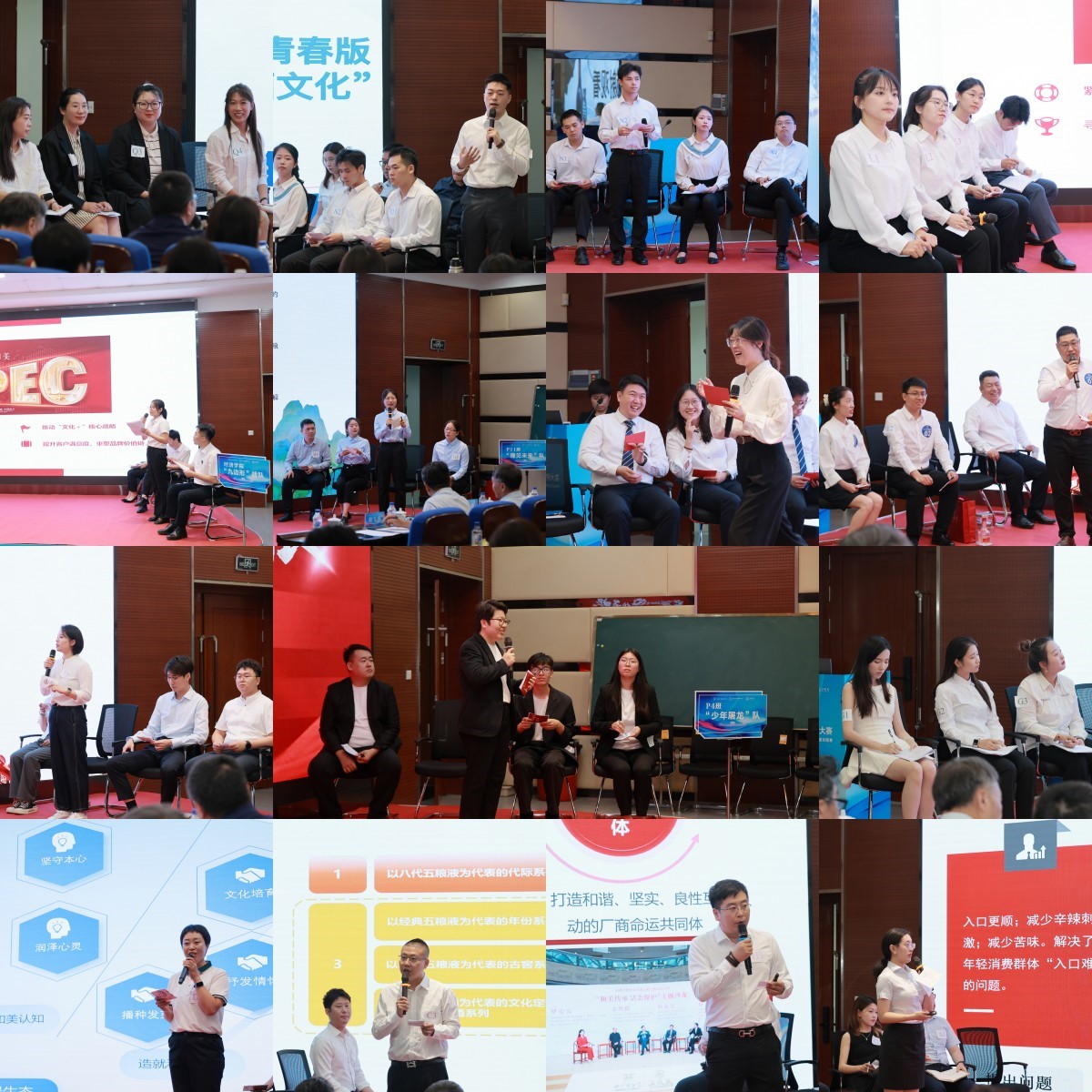 大赛分为赛前盲审和现场竞赛两个环节。现场竞赛环节采用大小PK制,15组队员围绕《破茧时代的断层:五粮液的品牌传承之路》案例展开头脑风暴,通过调研搜集整理素材,解读和剖析五粮液品牌的代际断层困惑,运用CBBEPESTEL波特五力模型等方法,从行业趋势企业定位企业未来战略品牌重塑等方面进行综合性分析,提出了切实的解决方案和可行性的战略规划。各组参赛队员各抒己见侃侃而谈,在犀利的对手提问与独到的评委点评中体味管理思维的交流与碰撞。