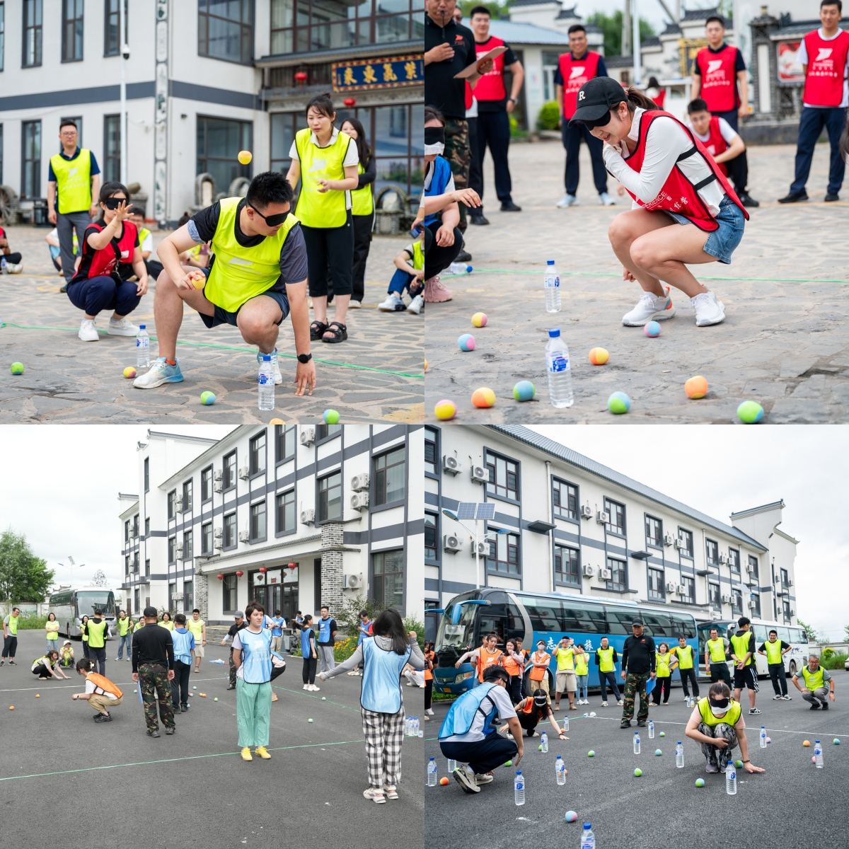每组队员在规定时间内,快速行动,完成不同次数的颠 球任务,在皮球和鼓面一次次撞击中,凝聚力量瞄准目标 团结协作。