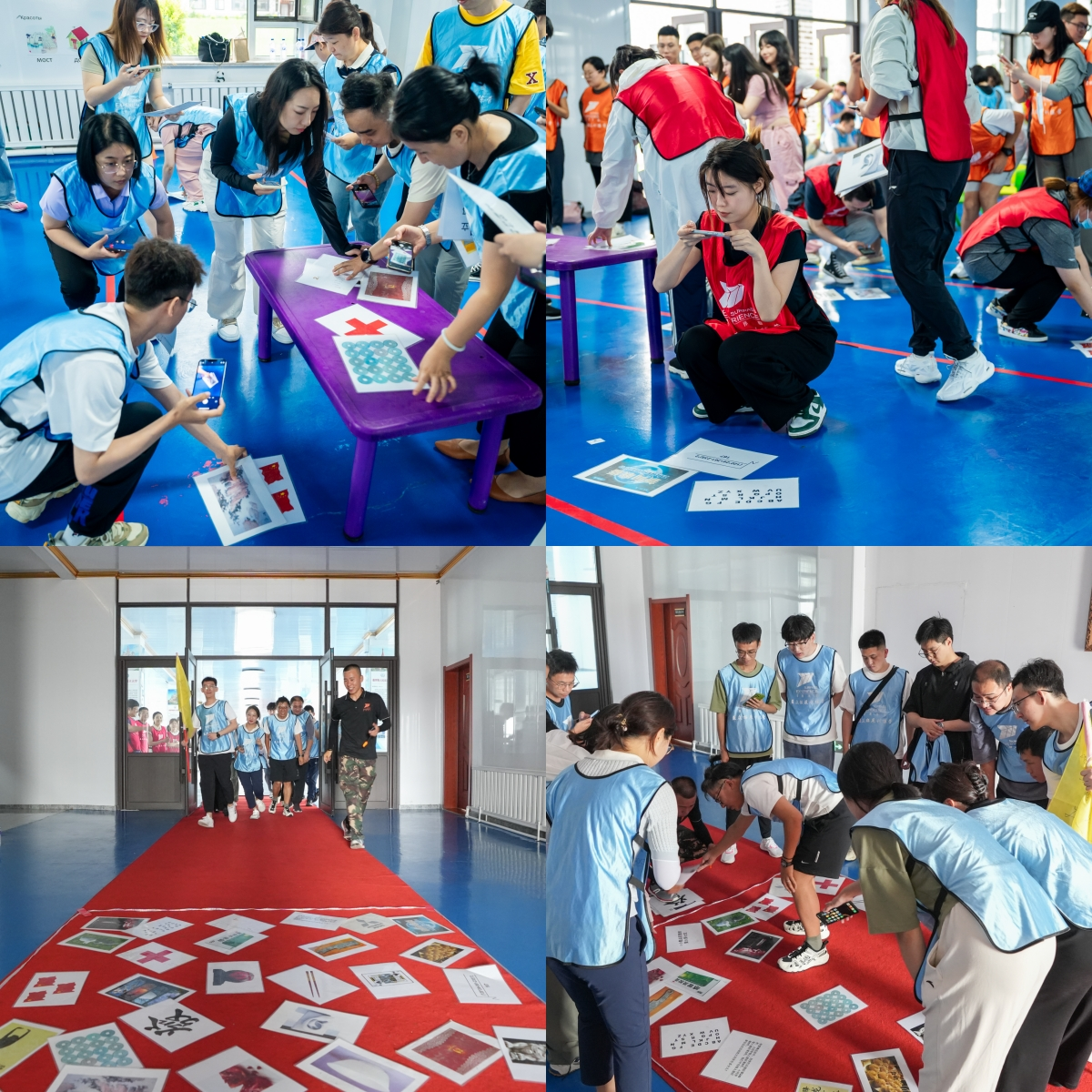 每组队员在规定的时间和规则下,分配角色,蒙上眼睛, 依次进入模拟战场。组内成员通过制定战略战术分解工作 任务,复盘分析,最终完成任务挑战。