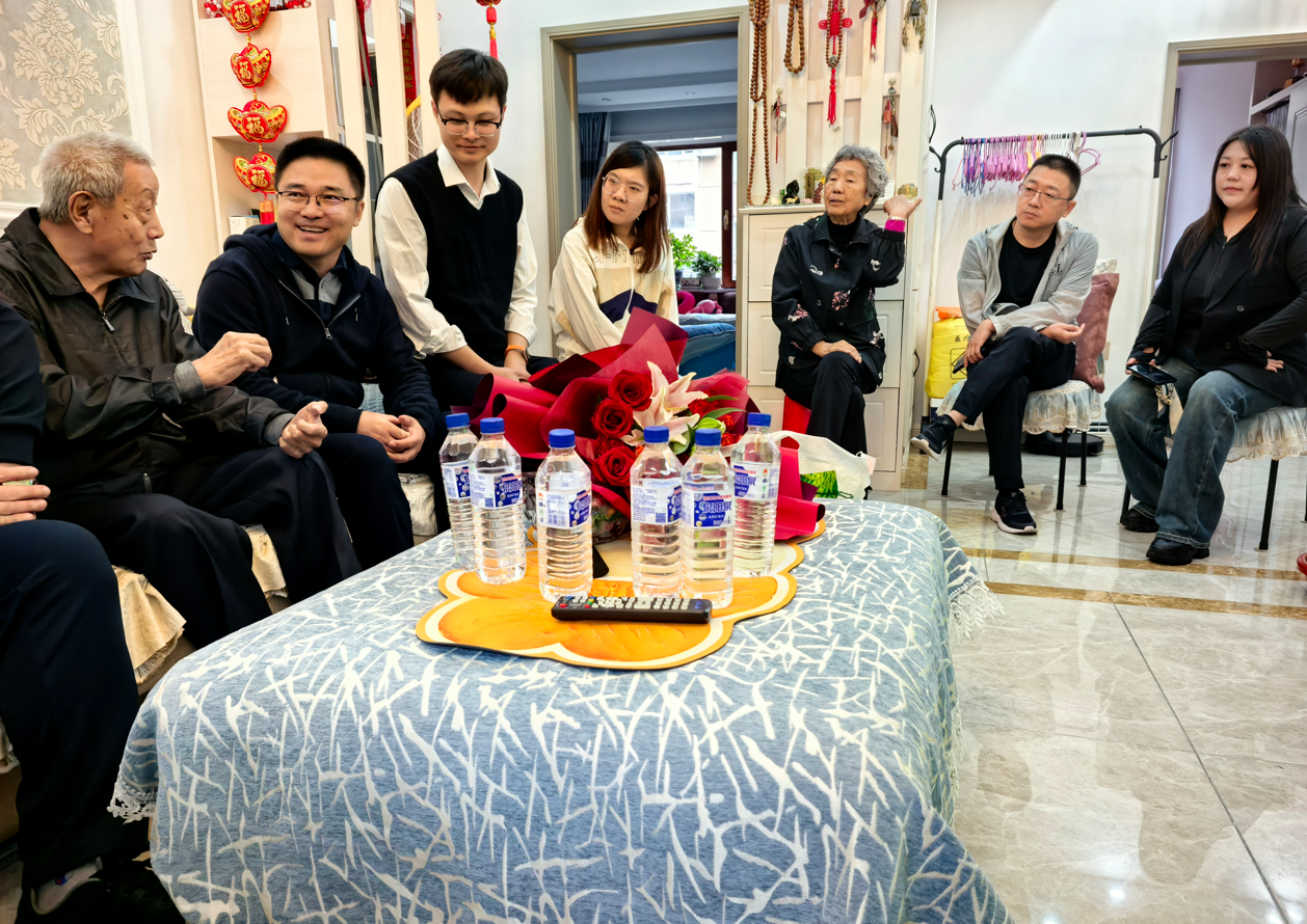 告别了刘启泉老人及夫人,EMC易倍官网MBA的师生一行又来到百岁抗美援朝英雄高永清老人的家中进行探访。一进门,老人穿着整齐的军装早已等候多时,胸前的军功章熠熠生辉。老人与同学们进行了亲切交谈,他虽已百岁高龄,但精神矍铄,言语清晰,思维敏捷。老人的脸上刻满了岁月的痕迹,那每一道皱纹都仿佛是一段历史的印记。同学们围坐在老人身边,没有过多激昂的话语,却有着心灵的沟通。老人的每一个眼神每一个微笑,都仿佛在诉说着那段波澜壮阔的历史。大家静静地陪伴在老人身边,聆听着历史的无声回响。在交流中,同学们感受到了老人身上历经岁月沉淀的那份从容与坚毅。他们仿佛看到了老人在抗美援朝的战场上,不畏强敌,英勇奋战的身影。那是怎样的一种勇气和担当,让他们在枪林弹雨中为了国家的尊严和和平,义无反顾地奉献出自己的一切。