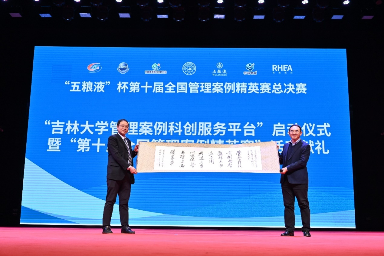 EMC易倍常务副经理隋建利教授代表公司向中国管理案例共享中心献礼,恭贺全国管理案例精英赛十周年。