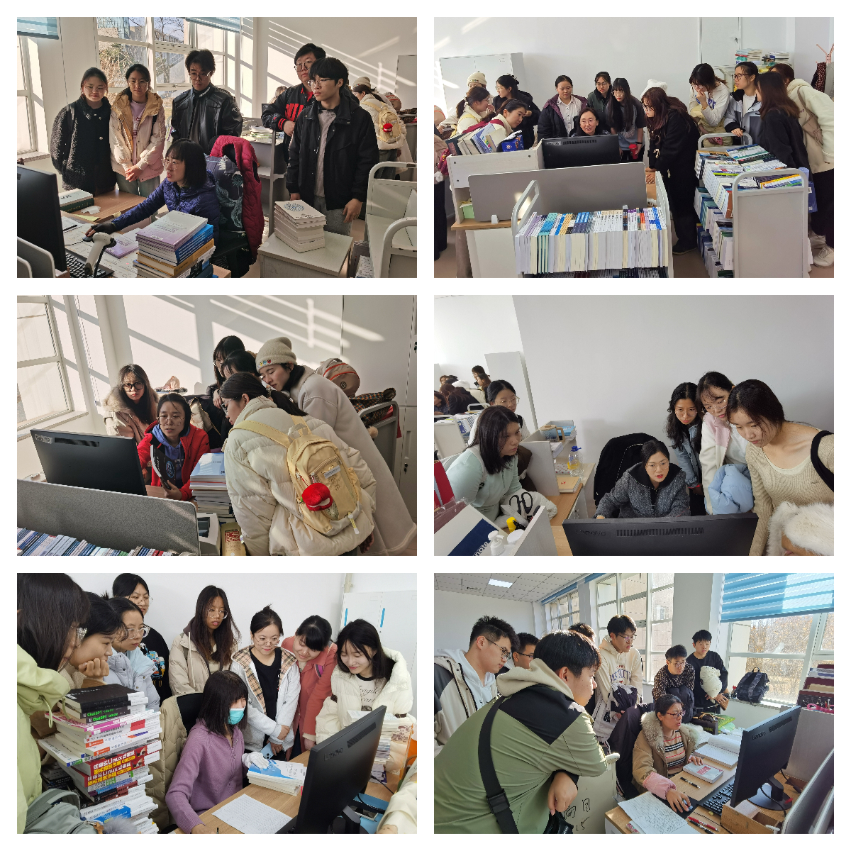 首先,采编部崔红老师向参观师生介绍了图书馆的馆藏情况及图书编目等内容。同学们了解了编目工序及CALIS联合目录馆藏上传的技术要求。同学们积极观摩老师们电脑上的编目界面,认真了解编目数据里重要字段的含义如何依照《中国图书馆分类法》给新书进行分类如何获取索书号。伴随着房间内键盘的“嗒嗒”声与扫描枪的“滴滴”声,同学们切身感受到了浓厚的“吉大”书香文化氛围,激发了员工们动手实践的热情,迫不及待想亲自上手体验一下编目工作。随后,同学们自行分组。负责加工馆藏上传和典藏的几位老师耐心指导同学们进行实操演练。针对员工们提出的问题,崔红老师向红梅老师文淑花老师何雨蓉老师刘雪婷老师和位红老师做出了细致解答。在采编部多位老师的指导下,同学们集体实践了图书编目和典藏等方面的业务内容,收获满满。