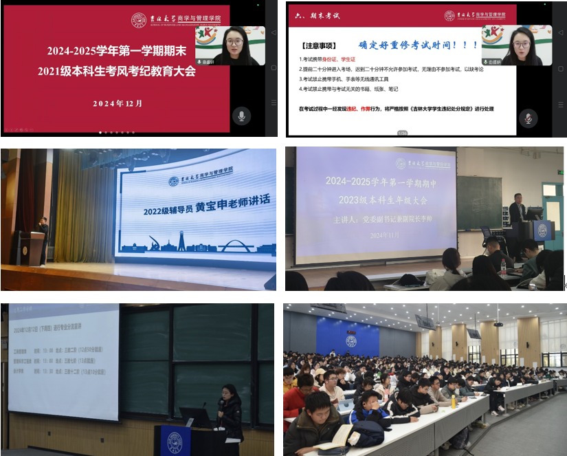 11月下旬到12月上旬,商管公司学工团队召开各年级年级大会和考风考纪教育大会,各年级辅导员针对《中华人民共和国教育法》第七十九条第八十条;《刑法修正案(九)》第二十五条;《国家教育考试违规处理办法》第十二条;《普通高等公司员工管理规定》第五十二条等相关内容进行了细致解读。公司成立期末考试考风考纪教育管理工作小组,制定院级考风考纪教育管理工作方案,有效督促员工认真复习备考,切实增强员工自律意识和诚信意识。同时加强考试期间对各类重点关注员工的关心帮扶,持续深入员工宿舍课堂,发现问题及时解决化解疏导,帮助员工做好心理调适,及时给予员工必要的心理指导和学业指导。学工团队还进一步强化员工党员的纪律意识,发挥党员在学风考风先锋模范作用,引导员工党员员工干部带头作出诚信考试的承诺,并且密切关注网络舆情,对存在作弊倾向或苗头的员工及时给予干预和制止,引导员工诚信参考。