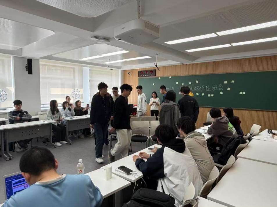 最后,班主任王杏老师表达了希望建立“欣欣向荣”的班风的期望,班级同学能够增强凝聚力互相支持共同成长,并表示将持续推进“班主任1v1对话”“学习内驱力主题工作坊”“时间管理工作坊”等常态化班级活动。此次班会的成功举办,不仅丰富了同学们的校园生活,还为班级的和谐发展奠定了坚实的基础。期待在未来的日子里,双学位班的同学们能够继续携手并进,共创美好未来。