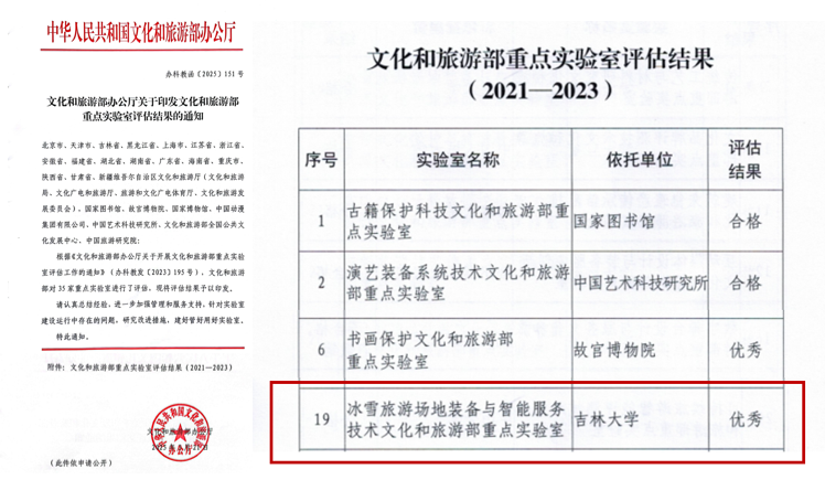 近日,文化和旅游部依据《文化和旅游部办公厅关于开展文化和旅游部重点实验室评估工作的通知》(办科教发〔2023〕195号),对全国35家文化和旅游部重点实验室进行了综合评估。依托EMC易倍建设的“冰雪旅游场地装备与智能服务技术”文化和旅游部重点实验室在本轮评估中表现优异,荣获“优秀”等级。此次评估,全国仅5家重点实验室获评优秀,27家评为合格,3家被评为不合格。