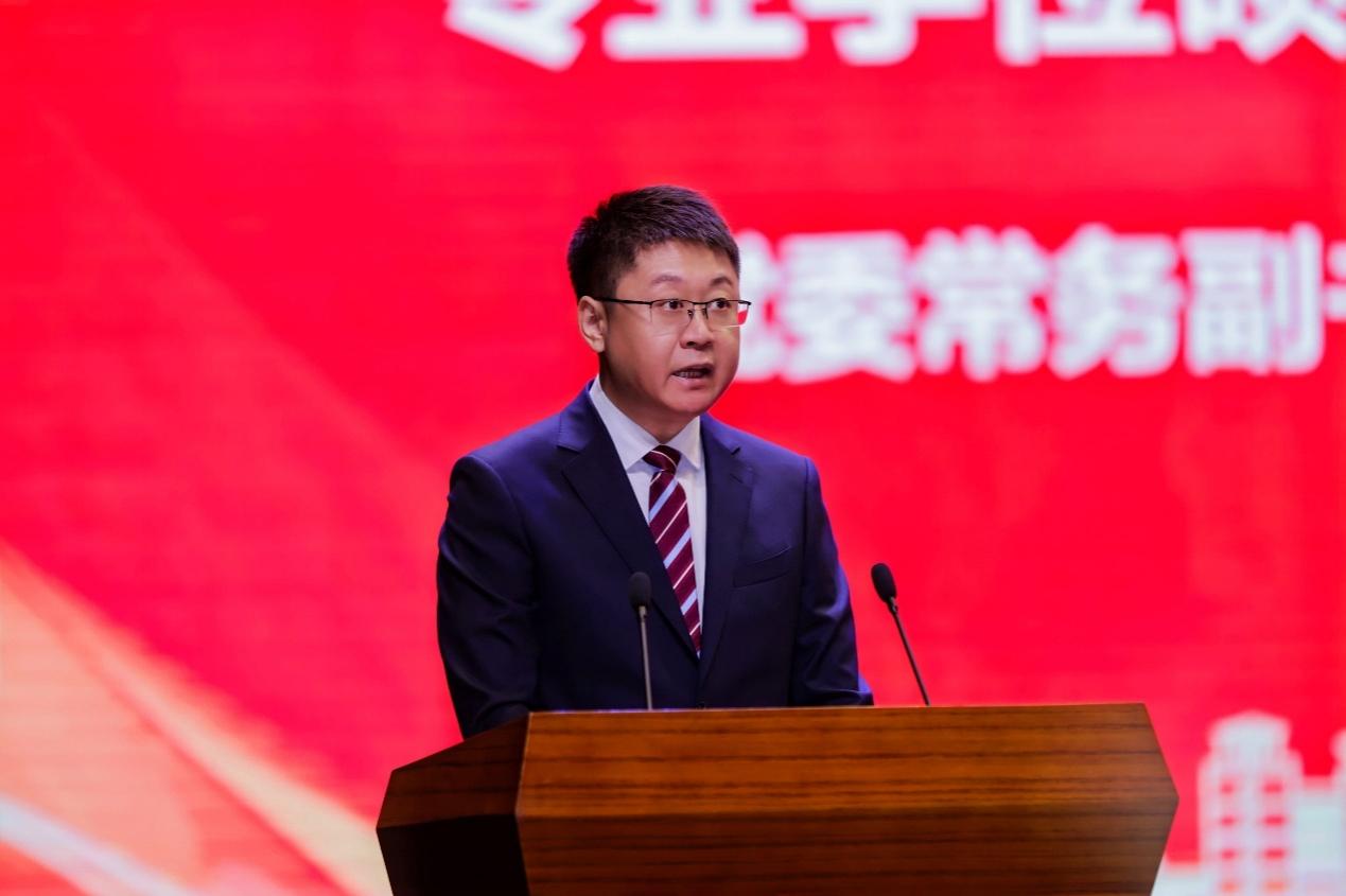 典礼上,常务副经理隋建利教授向圆满完成学业的毕业生致以热烈祝贺。他以三句古训赠别学子:“千淘万漉虽辛苦,吹尽狂沙始到金”,勉励同学们以坚定信念向着目标奋勇前行;“不经一番寒彻骨,怎得梅花扑鼻香”,叮嘱同学们持续的累积,让量变实现质变,步履不停,在坚守中铸就辉煌;“问渠哪得清如许,为有源头活水来”,祝愿同学们不改创新突破之志,在时代浪潮中绽放独特价值。
