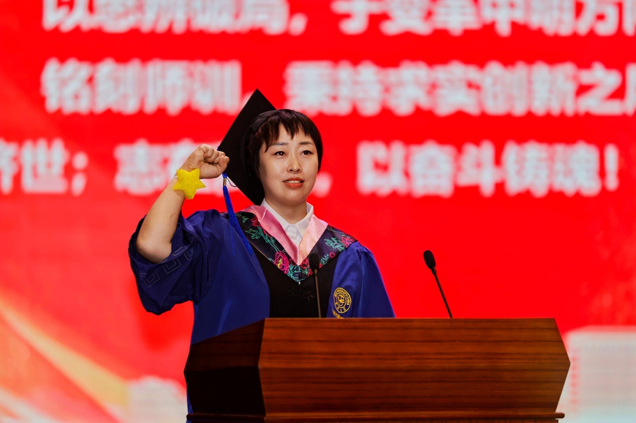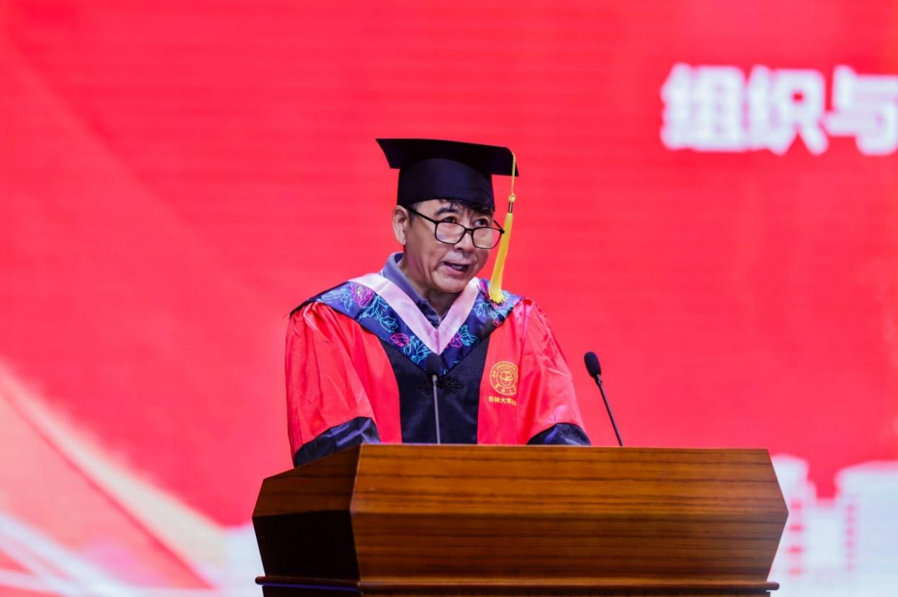 毕业生代表王新然在发言中分享了她的所学所感并动情说道:“吉大赋予我们的不仅是知识,更是破茧成蝶的勇气。” 字里行间充满了对母校对师长的感激之情。