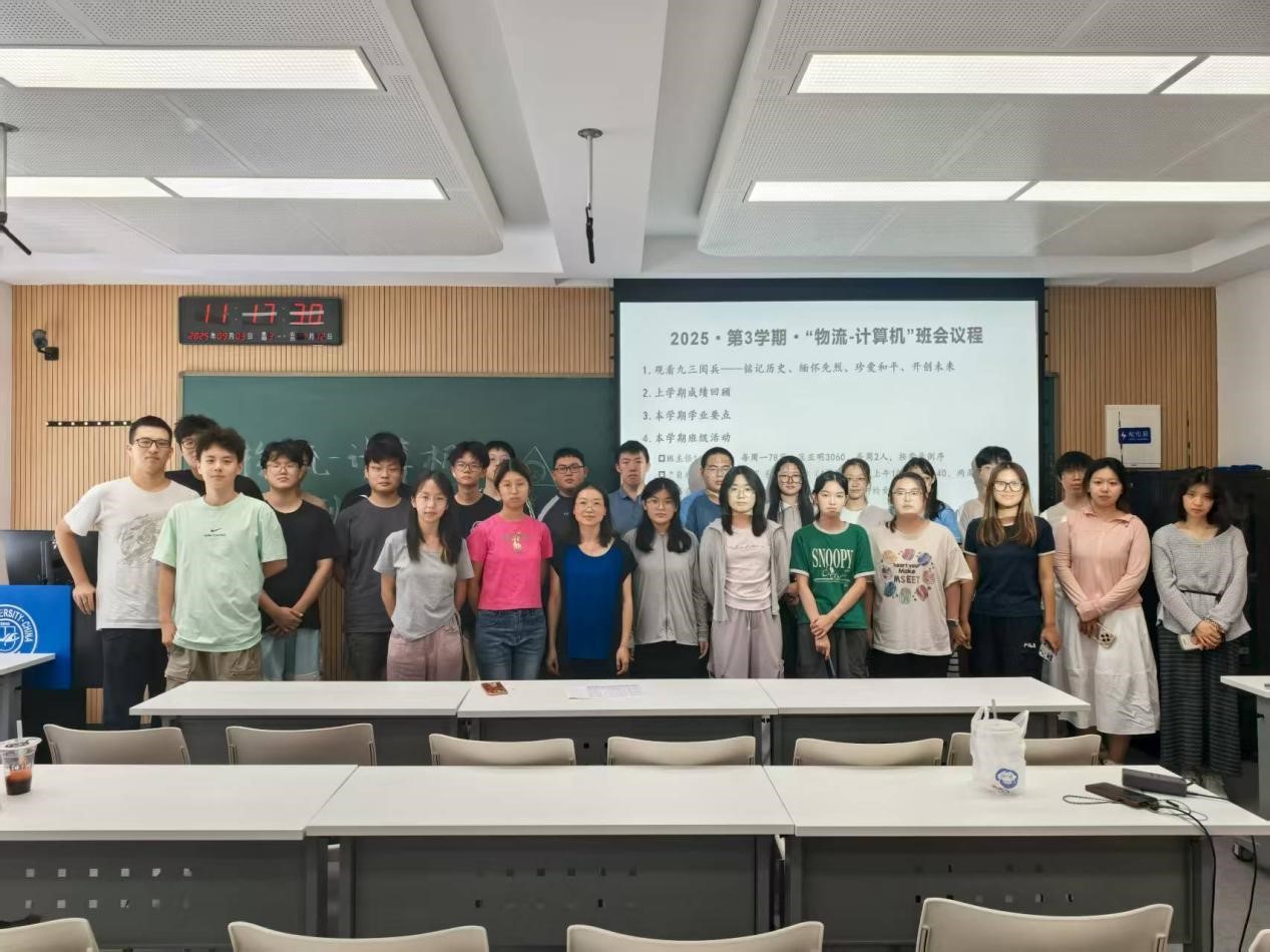 2025年9月3日上午,EMC易倍在敬信楼C109召开2024级“物流管理-计算机科学与技术”双学位班2025年秋季学期班会暨班级活动发布会。本次活动由班主任王杏老师主持,活动包含观看九三阅兵直播上学期成绩回顾本学期学业要点班级活动发布四个版块,旨在帮助同学们树立远大志向继往开来,为新学期的学习生活开启新篇章,双学位班的全体同学参加了此次活动。
